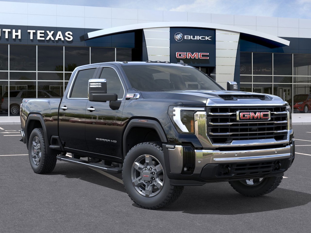 2025 GMC Sierra 2500HD Onyx Black 4WD SLT Duramax 6.6L V8 Turbodiesel 10-Speed Automatic, 4WD, Black Leather, 10-Way Power Driver Seat Adjuster w/Lumbar, 10-Way Power Passenger Seat Adjuster w/Lumbar, 120-Volt Bed Mounted Power Outlet, 120-Volt Instrument Panel Power Outlet, 18 Machined Aluminum Wheels, 2 Charge-Only Rear USB Ports, 2 Charge/Data USB Ports, 2 Charge/Data USB Ports Inside Center Console, 2-Speed Active Transfer Case, 220-Amp Alternator, 4-Wheel Disc Brakes, 6 Speakers, 6-Speaker Audio System Feature, 6 Rectangular Chromed Tubular Assist Steps, ABS brakes, Adaptive Cruise Control, Air Conditioning, All-Weather Floor Liners (LPO), Alloy wheels, AM/FM radio: SiriusXM with 360L, Apple CarPlay/Android Auto, Auto High-beam Headlights, Auto-dimming door mirrors, Auto-dimming Rear-View mirror, Automatic Emergency Braking, Automatic temperature control, Bed View Camera w/2 Trailer Camera Provisions, Bose Premium 7-Speaker Sound System, Brake assist, Buckle to Drive, Bumpers: chrome, Chrome Surround Grille w/Chrome Insert Bars, Compass, Deep-Tinted Glass, Delay-off headlights, Driver door bin, Driver Memory, Driver vanity mirror, Dual front impact airbags, Dual front side impact airbags, Electric Rear-Window Defogger, Electronic Stability Control, Emergency communication system: OnStar, Engine Block Heater, Exhaust Brake, Floor-Mounted Center Console, Following Distance Indicator, Forward Collision Alert, Front 40/20/40 Split-Bench Seats, Front anti-roll bar, Front Bucket Seats, Front Center Armrest w/Storage, Front dual zone A/C, Front fog lights, Front License Plate Kit, Front Pedestrian Braking, Front Rain-Sensing Wipers, Front reading lights, Front wheel independent suspension, Fully automatic headlights, HD Rear Vision Camera Delete, HD Surround Vision, Heated 2nd Row Outboard Seats, Heated door mirrors, Heated Driver & Front Outboard Passenger Seats, Heated front seats, Heated steering wheel, Heavy-Duty 80 Amp Battery, Hill Descent Control, Hitch Guidance w/Hitch View, Illuminated entry, In-Vehicle Trailering System App, IntelliBeam Automatic High Beam On/Off, Keyless Open & Start, Lane Departure Warning System, LED Cargo Area Lighting, LED Smoked Amber Roof Marker Lamps, Low tire pressure warning, Manual Tilt-Wheel/Telescoping Steering Column, Memory seat, Occupant sensing airbag, Off-Road Suspension, OnStar Services Capable, Outside temperature display, Overhead airbag, Overhead console, Panic alarm, Passenger door bin, Passenger vanity mirror, Perf Leather-Appointed Front Outboard Seat Trim, Pickup Box, Power door mirrors, Power driver seat, Power Front Passenger Windows w/Express Up/Down, Power passenger seat, Power Sliding Rear Window w/Defogger, Power steering, Power windows, Preferred Equipment Group 4SA, Push Button Start, Radio: AM/FM w/Premium GMC Infotainment System, Rain sensing wipers, Rear Cross Traffic Alert, Rear reading lights, Rear seat center armrest, Rear step bumper, Rear Wheelhouse Liners, Rear window defroster, Remote keyless entry, Remote Vehicle Starter System, Safety Alert Seat, Security system, Sierra HD Pro Safety Plus Package, SiriusXM w/360L Trial Subscription, SLT Convenience Package, SLT Preferred Package, Speed control, Speed-sensing steering, Split folding rear seat, Spray-On Pickup Bedliner w/GMC Logo, Steering Wheel Audio Controls, Steering wheel mounted audio controls, Suspension Package, Tachometer, Telescoping steering wheel, Texas Edition Badging, Texas SLT Premium Package, Tilt steering wheel, Traction control, Trailer Cam Provisions & Trailer Viewing Software, Trailer Side Blind Zone Alert, Trip computer, Turn signal indicator mirrors, Ultrasonic Front & Rear Park Assist, Unauthorized Entry Theft-Deterrent System, Universal Home Remote, Variably intermittent wipers, Ventilated Driver & Front Passenger Seats, Voltmeter, Wheels: 20 Bright Face w/Dark Painted Pockets, Winter Grille Cover, Wireless Charging, Wireless Phone Proje