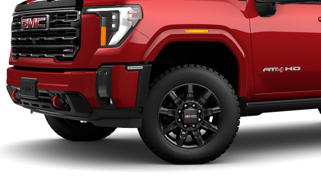 2025 GMC Sierra 2500HD Volcanic Red Tintcoat 4WD AT4 Duramax 6.6L V8 Turbodiesel 10-Speed Automatic, 4WD, Jet Black With Kalahari Accents Leather, 10-Way Power Driver Seat Adjuster w/Lumbar, 10-Way Power Passenger Seat Adjuster w/Lumbar, 120-Volt Bed Mounted Power Outlet, 120-Volt Instrument Panel Power Outlet, 2 Charge-Only Rear USB Ports, 2 Charge/Data USB Ports Inside Center Console, 2 USB Ports, 2-Speed Active Transfer Case, 220-Amp Alternator, 4-Wheel Disc Brakes, 7 Speakers, ABS brakes, Air Conditioning, Alloy wheels, AM/FM radio: SiriusXM with 360L, Apple CarPlay/Android Auto, AT4 Preferred Package, AT4 Premium Plus Package, Auto High-beam Headlights, Auto-dimming door mirrors, Auto-dimming Rear-View mirror, Automatic Emergency Braking, Automatic temperature control, Bed View Camera w/2 Trailer Camera Provisions, Body Color Wheel Arch Moldings (LPO), Bose Premium 7-Speaker Sound System, Brake assist, Buckle to Drive, Bumpers: body-color, Compass, Deep-Tinted Glass, Delay-off headlights, Driver door bin, Driver Memory, Driver vanity mirror, Dual front impact airbags, Dual front side impact airbags, Electric Rear-Window Defogger, Electronic Stability Control, Emergency communication system: OnStar, Engine Block Heater, Exhaust Brake, Floor-Mounted Center Console, Following Distance Indicator, Forward Collision Alert, Front anti-roll bar, Front Bucket Seats, Front Center Armrest, Front dual zone A/C, Front fog lights, Front License Plate Kit, Front Pedestrian Braking, Front Prem Floor Liners w/Removable Carpet Insert, Front Rain-Sensing Wipers, Front reading lights, Front wheel independent suspension, Fully automatic headlights, Gloss Black Header Grille & Grille Insert Bars, GMC MultiPro Tailgate Step Lights (LPO), Gooseneck/5th Wheel Prep Package, HD Surround Vision, Heated 2nd Row Outboard Seats, Heated door mirrors, Heated Driver & Front Outboard Passenger Seats, Heated front seats, Heated rear seats, Heated steering wheel, Heavy-Duty 80 Amp Battery, Hill Descent Control, Hitch Guidance w/Hitch View, Illuminated entry, In-Vehicle Trailering System App, Inside Rearview Auto-Dimming Rear Camera Mirror, IntelliBeam Automatic High Beam On/Off, Keyless Open & Start, Lane Departure Warning System, LED Cargo Area Lighting, LED Smoked Amber Roof Marker Lamps, Low tire pressure warning, Manual Tilt-Wheel/Telescoping Steering Column, Memory seat, Multicolor 15 Diagonal Head-Up Display, Occupant sensing airbag, Off-Road High Clearance Step (LPO), Off-Road Suspension, OnStar Services Capable, Outside temperature display, Overhead airbag, Overhead console, Panic alarm, Passenger door bin, Passenger vanity mirror, Perforated Leather-Appointed Front Seat Trim, Pickup Box, Power door mirrors, Power driver seat, Power Front Passenger Windows w/Express Up/Down, Power passenger seat, Power Sliding Rear Window w/Defogger, Power steering, Power Sunroof, Power windows, Power-Retractable Black Assist Steps, Preferred Equipment Group 4SB, Push Button Start, Radio: AM/FM w/Premium GMC Infotainment System, Rain sensing wipers, Rear Cross Traffic Alert, Rear Prem Floor Liners w/Removable Carpet Insert, Rear reading lights, Rear seat center armrest, Rear step bumper, Rear Wheelhouse Liners, Rear window defroster, Remote keyless entry, Remote Vehicle Starter System, Safety Alert Seat, Security system, SiriusXM w/360L Trial Subscription, Speed control, Speed-sensing steering, Split folding rear seat, Spray-On Pickup Bedliner w/GMC Logo, Steering Wheel Audio Controls, Steering wheel mounted audio controls, Tachometer, Technology Package, Telescoping steering wheel, Tilt steering wheel, Traction control, Trailer Cam Provisions & Trailer Viewing Software, Trailer Side Blind Zone Alert, Trip computer, Turn signal indicator mirrors, Ultrasonic Front & Rear Park Assist, Unauthorized Entry Theft-Deterrent System, Universal Home Remote, Variably intermittent wipers, Ventilated Driver & Front Passenger Seats