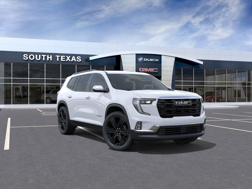 2026 GMC Acadia Glacier White Tricoat FWD Elevation 2.5L DOHC FWD, After Dark Cloth, 12 Speakers, 18 x 7.5 Aluminum Wheels, 3-Channel Programmable Universal Home Remote, 3.49 Final Drive Axle Ratio, 3rd row seats: split-bench, 4-Way Manual Front Passenger Seat Adjuster, 4-Wheel Disc Brakes, 6-Way Power Front Passenger Seat Adjuster, 7-Passenger Seating (2-2-3 Seating Configuration), 8-Passenger Seating (2-3-3 Seating Configuration), 8-Way Power Driver Seat Adjuster, ABS brakes, Air Conditioning, Alloy wheels, AM/FM radio: SiriusXM with 360L, Apple CarPlay/Android Auto, Auto High-beam Headlights, Automatic temperature control, Black Edition, Bodyside moldings, Bose Premium 12-Speaker System with Sub-Woofer, Brake assist, Bumpers: body-color, Cloth Seat Trim, Compass, CoreTec Seat Trim, Delay-off headlights, Driver 2-Way Power Lumbar Seat Adjuster, Driver door bin, Driver vanity mirror, Dual front impact airbags, Dual front side impact airbags, Electronic Stability Control, Elevation Premium Package, Emergency communication system: OnStar Services capable, Exterior Parking Camera Rear, Four wheel independent suspension, Front and Rear Black GMC Emblems, Front anti-roll bar, Front Bucket Seats, Front Center Armrest, Front dual zone A/C, Front fog lights, Front Passenger Power Lumbar Seat Adjuster, Front reading lights, Fully automatic headlights, Gloss Black Roof Rails, Heated door mirrors, Heated Driver and Front Passenger Seats, Heated front seats, Heated steering wheel, High Gloss Black Door Upper Moldings, Illuminated entry, Leather steering wheel, Low tire pressure warning, Navigation System, Occupant sensing airbag, Outside temperature display, Overhead airbag, Overhead console, Panic alarm, Passenger door bin, Passenger vanity mirror, Performance Suspension, Power door mirrors, Power driver seat, Power Liftgate, Power steering, Power windows, Radio data system, Radio: 15 Diagonal Premium GMC Infotainment System, Rear air conditioning, Rear anti-roll bar, Rear reading lights, Rear seat center armrest, Rear side impact airbag, Rear window defroster, Rear window wiper, Remote keyless entry, Security system, SiriusXM with 360L, Speed control, Speed-sensing steering, Split folding rear seat, Spoiler, Sport steering wheel, Steering wheel mounted audio controls, Tachometer, Telescoping steering wheel, Tilt steering wheel, Traction control, Trip computer, Turn signal indicator mirrors, Variably intermittent wipers, Voltmeter, Wheels: 22 x 8.5 Gloss Black Aluminum, FWD, After Dark Cloth.