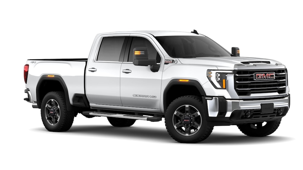 2026 GMC Sierra 2500HD Summit White 4WD SLE Duramax 6.6L V8 Turbodiesel 10-Speed Automatic, 4WD, Jet Black Cloth, 120-Volt Bed Mounted Power Outlet, 120-Volt Instrument Panel Power Outlet, 17 Machined Aluminum Wheels, 2 Charge-Only Rear USB Ports, 2 Charge/Data USB Ports, 2-Speed Electronic Shift Transfer Case, 220-Amp Alternator, 4-Way Manual Driver Seat Adjuster, 4-Way Manual Passenger Seat Adjuster, 4-Wheel Disc Brakes, 6 Speakers, 6-Speaker Audio System Feature, ABS brakes, Air Conditioning, Alloy wheels, AM/FM radio: SiriusXM with 360L, Apple CarPlay/Android Auto, Auto High-beam Headlights, Automatic Emergency Braking, Brake assist, Buckle to Drive, Bumpers: chrome, Chrome Surround Grille with Chrome Insert Bars, Cloth Seat Trim, Compass, Deep-Tinted Glass, Delay-off headlights, Driver door bin, Driver vanity mirror, Dual front impact airbags, Dual front side impact airbags, Electronic Stability Control, Emergency communication system: OnStar, Engine Block Heater, Exhaust Brake, Following Distance Indicator, Forward Collision Alert, Front 40/20/40 Split-Bench Seats, Front anti-roll bar, Front Center Armrest w/Storage, Front License Plate Kit, Front Pedestrian Braking, Front reading lights, Front wheel independent suspension, Fully automatic headlights, Heated door mirrors, Heavy-Duty 80 Amp Battery, Illuminated entry, IntelliBeam Automatic High Beam on/Off, Keyless Open and Start, Lane Departure Warning System, Low tire pressure warning, Occupant sensing airbag, OnStar Services Capable, Outside temperature display, Overhead airbag, Overhead console, Panic alarm, Passenger door bin, Passenger vanity mirror, Pickup Box, Power door mirrors, Power steering, Power windows, Preferred Equipment Group 3SA, Premium audio system: Premium GMC Infotainment System, Push Button Start, Radio: AM/FM Stereo with Premium GMC Infotainment System, Rear reading lights, Rear step bumper, Remote keyless entry, SiriusXM with 360L Trial Subscription, Speed control, Split folding rear seat, Spray-on Pickup Bedliner with GMC Logo, Steering Wheel Audio Controls, Steering wheel mounted audio controls, Suspension Package, Tachometer, Tilt steering wheel, Traction control, Trip computer, Turn signal indicator mirrors, Variably intermittent wipers, Voltmeter, Wheels: 20 Bright Face with Dark Painted Pockets, Winter Grille Cover, Wireless Phone Projection, 10-Speed Automatic, 4WD, Jet Black Cloth.