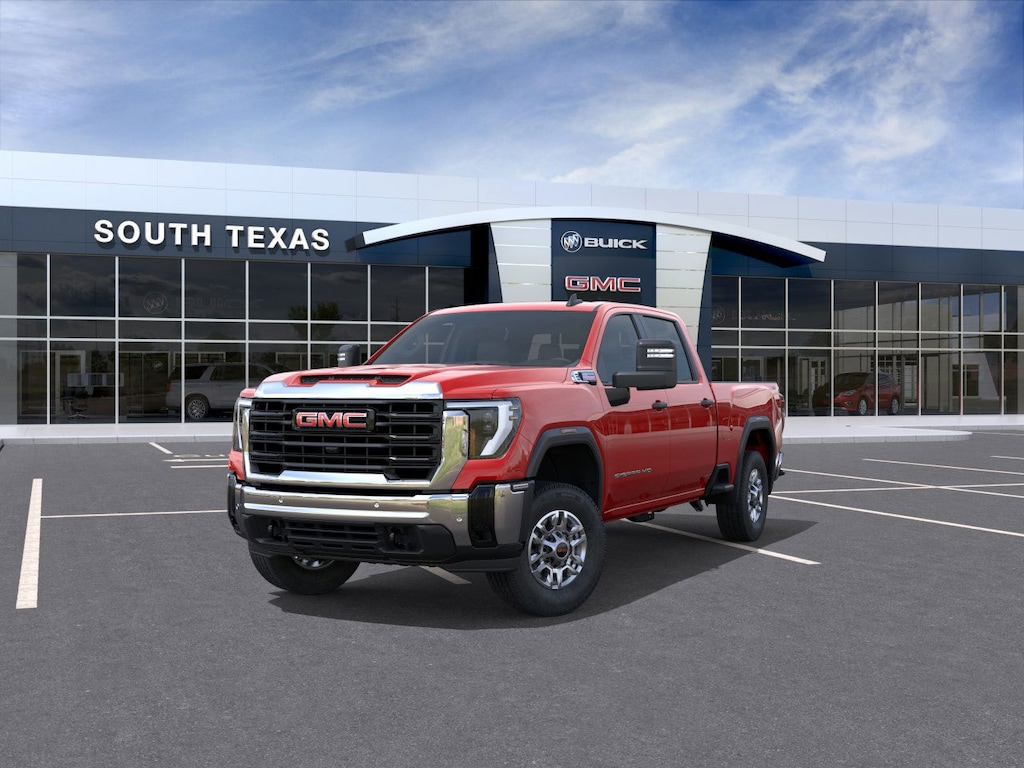 lifted - South Texas Sierra Custom Package - This package includes a 3.5 Lift Kit, 35 Nitto Recon Grappler R/T Tires, a Custom leather interior on these awesome Sierras, a recalibrated speedometer, and properly re-aligned suspension. It's got great looks and an awesome ride!!! 2026 GMC Sierra 2500HD Cardinal Red 4WD Pro Duramax 6.6L V8 Turbodiesel 10-Speed Automatic, 4WD, Jet Black Vinyl, 120-Volt Bed Mounted Power Outlet, 120-Volt Instrument Panel Power Outlet, 17 Machined Aluminum Wheels, 1SA Pro Safety Plus Package, 2 Charge-Only Rear USB Ports, 2 Charge/Data USB Ports, 2-Speed Electronic Shift Transfer Case, 220-Amp Alternator, 4-Way Manual Driver Seat Adjuster, 4-Way Manual Passenger Seat Adjuster, 4-Wheel Disc Brakes, 6 Speakers, 6-Speaker Audio System Feature, 6 Rectangular Black Tubular Assist Steps, ABS brakes, Air Conditioning, AM/FM radio, Apple CarPlay/Android Auto, Auto High-beam Headlights, Auto-Dimming Inside Rear-View Mirror, Automatic Emergency Braking, Brake assist, Buckle to Drive, Bumpers: chrome, Chrome Grille with Flat Black Grille Insert Bars, Compass, Convenience Package, Deep-Tinted Glass, Delay-off headlights, Driver door bin, Dual front impact airbags, Dual front side impact airbags, Electric Rear-Window Defogger, Electronic Stability Control, Emergency communication system: OnStar, Engine Block Heater, Exhaust Brake, EZ Lift Power Lock and Release Tailgate, Following Distance Indicator, Forward Collision Alert, Front 40/20/40 Split-Bench Seats, Front anti-roll bar, Front Center Armrest w/Storage, Front License Plate Kit, Front Pedestrian Braking, Front reading lights, Front wheel independent suspension, Fully automatic headlights, Gooseneck/5th Wheel Prep Package, Heavy-Duty 80 Amp Battery, Hill Descent Control, Illuminated entry, IntelliBeam Automatic High Beam on/Off, Lane Change Alert with Side Blind Zone Alert, Lane Departure Warning System, LED Cargo Area Lighting, Low tire pressure warning, Occupant sensing airbag, Off-Road Suspension, OnStar Services Capable, Outside temperature display, Overhead airbag, Overhead console, Panic alarm, Passenger door bin, Passenger vanity mirror, Perimeter Lighting, Pickup Box, Power steering, Power windows, Power-Adjustable Black Outside Mirrors, Preferred Equipment Group 1SA, Premium audio system: GMC Infotainment System, Push Button Start, Radio: AM/FM with GMC Infotainment System, Rear Cross Traffic Alert, Rear reading lights, Rear step bumper, Remote Keyless Entry, Remote keyless entry, Solar Absorbing Tinted Glass, Speed control, Split folding rear seat, Spray-on Pickup Bedliner, Suspension Package, Tachometer, Tilt steering wheel, Traction control, Trip computer, Ultrasonic Front and Rear Park Assist, Variably intermittent wipers, Vinyl Seat Trim, Voltmeter, Wheels: 17 Silver Painted Steel, Winter Grille Cover, Wireless Phone Projection, X31 Off-Road Package, 10-Speed Automatic, 4WD, Jet Black Vinyl.
