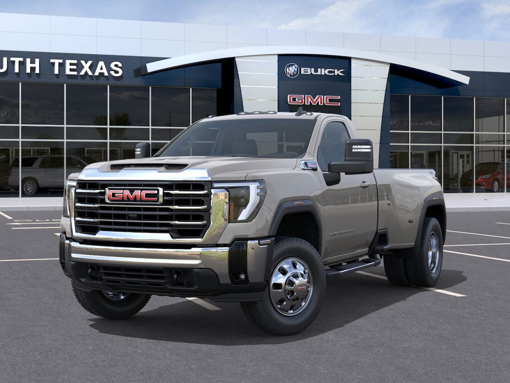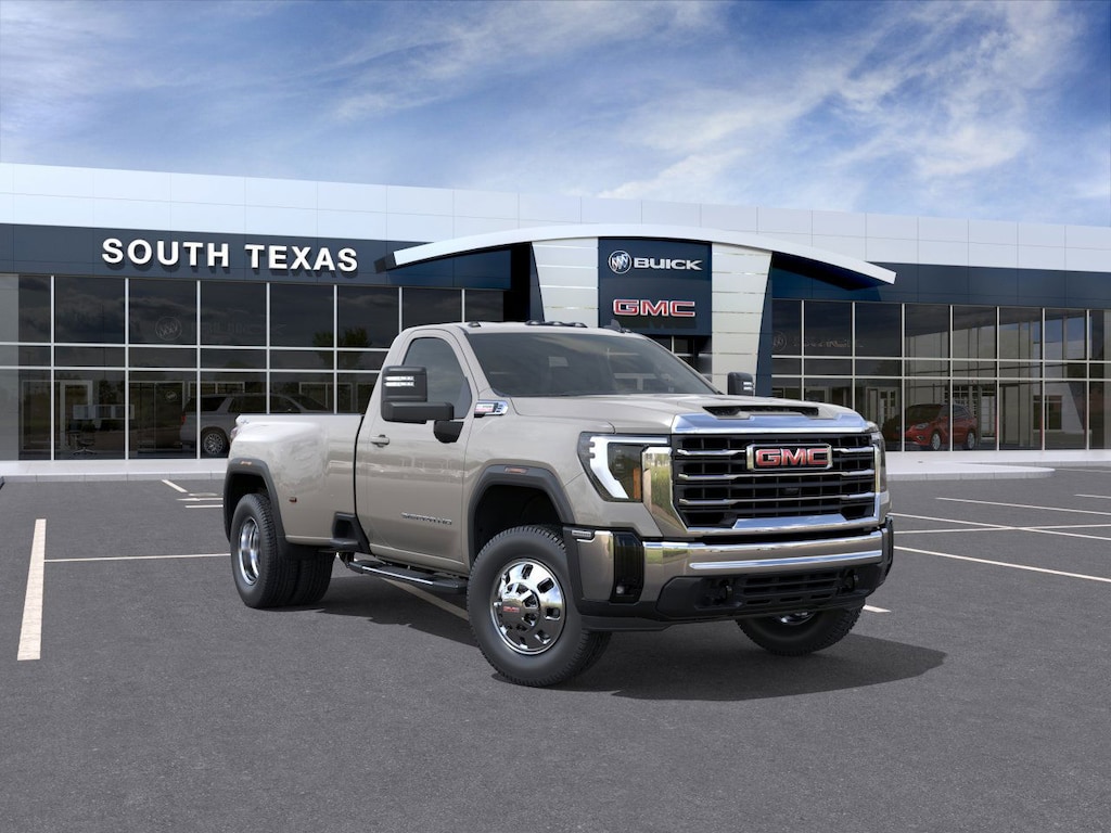 2026 GMC Sierra 3500HD White Sands 4WD SLE Duramax 6.6L V8 Turbodiesel 10-Speed Automatic, 4WD, Jet Black Cloth, 10-Way Power Driver Seat Adjuster with Lumbar, 120-Volt Bed Mounted Power Outlet, 120-Volt Instrument Panel Power Outlet, 2 Charge/Data USB Ports, 2 Speakers, 2-Speaker Audio System Feature, 2-Speed Electronic Shift Transfer Case, 4-Way Manual Driver Seat Adjuster, 4-Way Manual Passenger Seat Adjuster, 4-Wheel Disc Brakes, 6 Rectangular Chromed Tubular Assist Steps, ABS brakes, Air Conditioning, AM/FM radio: SiriusXM with 360L, Auto High-beam Headlights, Automatic Emergency Braking, Brake assist, Buckle to Drive, Bumpers: chrome, Chrome Surround Grille with Chrome Insert Bars, Cloth Seat Trim, Compass, Deep-Tinted Glass, Delay-off headlights, Driver door bin, Driver vanity mirror, Dual front impact airbags, Dual front side impact airbags, Dual-Zone Automatic Climate Control, Electric Rear-Window Defogger, Electronic Stability Control, Emergency communication system: OnStar Services capable, Exterior Parking Camera Rear, Following Distance Indicator, Forward Collision Alert, Front 40/20/40 Split-Bench Seats with Lockable Storage, Front anti-roll bar, Front Center Armrest w/Storage, Front Pedestrian Braking, Front reading lights, Front wheel independent suspension, Fully automatic headlights, GMC Premium 13.4 Diagonal Information Display, Gooseneck/5th Wheel Prep Package, Heated door mirrors, Heavy-Duty 80 Amp-Hour Battery, Illuminated entry, IntelliBeam Automatic High Beam on/Off, Keyless Open and Start, Lane Departure Warning System, LED Fog Lamps, Low tire pressure warning, Manual Tilt-Wheel/Telescoping Steering Column, Occupant sensing airbag, Outside temperature display, Overhead airbag, Overhead console, Panic alarm, Passenger door bin, Passenger vanity mirror, Pickup Bed, Power door mirrors, Power steering, Power windows, Premium audio system: Premium GMC Infotainment System, Push Button Start, Radio: AM/FM Stereo with Premium GMC Infotainment System, Rear step bumper, Remote keyless entry, Remote Start Package, Remote Vehicle Starter System, SiriusXM with 360L Trial Subscription, SLE Convenience Package, Speed control, Spray-on Pickup Bedliner with GMC Logo, Steering Wheel Audio Controls, Steering wheel mounted audio controls, Suspension Package, Tachometer, Tilt steering wheel, Traction control, Trip computer, Turn signal indicator mirrors, Unauthorized Entry Theft-Deterrent System, Variably intermittent wipers, Voltmeter, Wireless Phone Projection, 10-Speed Automatic, 4WD, Jet Black Cloth.