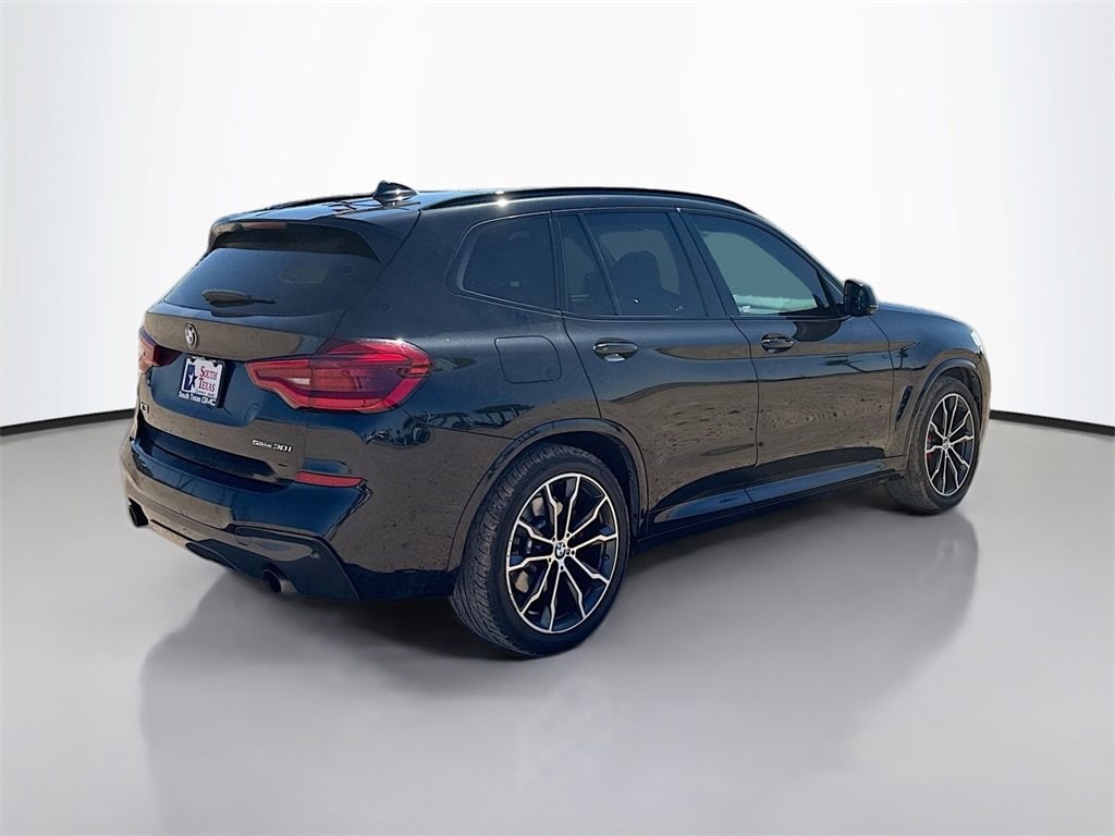 Black Sapphire Metallic 2021 BMW X3 sDrive30i RWD 8-Speed Automatic Sport 2.0L I4 TwinPower TurboWE ARE OPEN FOR ALL YOUR SALES AND SERVICE NEEDS! COMPLETE ONLINE BUYING EXPERIENCE AVAILABLE!CALL 956-661-5000 TO SCHEDULE YOUR CONTACT FREE TEST DRIVE TODAY!8-Speed Automatic Sport, 12 Speakers, 3.385 Axle Ratio, 4-Wheel Disc Brakes, ABS brakes, Active Park Distance Control, Aerodynamic Kit, Air Conditioning, Alloy wheels, Aluminum Rhombicle Trim, AM/FM radio: SiriusXM, Ambient Lighting, Apple CarPlay & Android Auto Compatibility, Apple CarPlay Compatibility, Auto-dimming door mirrors, Auto-dimming Rear-View mirror, Automatic temperature control, BMW Assist eCall, BMW TeleServices, Brake assist, Bumpers: body-color, Comfort Access Keyless Entry, Connected Package Plus, Connected Package Pro, ConnectedDrive Services, Convenience Package, Delay-off headlights, Driver door bin, Driver vanity mirror, Dual front impact airbags, Dual front side impact airbags, Electronic Stability Control, Emergency communication system: BMW Assist eCall, Extended Shadowline Trim, Exterior Parking Camera Rear, Four wheel independent suspension, Front anti-roll bar, Front Bucket Seats, Front Center Armrest, Front dual zone A/C, Front fog lights, Front reading lights, Fully automatic headlights, Garage door transmitter, Genuine wood dashboard insert, Genuine wood door panel insert, Heated door mirrors, Hi-Fi Sound System, Illuminated entry, Knee airbag, Live Cockpit Pro w/Navigation, Low tire pressure warning, Lumbar Support, M Sport Brakes w/Red Calipers, M Sport Package, M Sport Package (337), M Steering Wheel, Memory seat, Navigation, Navigation System, Occupant sensing airbag, Outside temperature display, Overhead airbag, Panic alarm, Panoramic Moonroof, Parking Assistance Package, Parking Assistant Plus, Passenger door bin, Passenger vanity mirror, Power door mirrors, Power driver seat, Power Front Seats, Power Liftgate, Power passenger seat, Power steering, Power windows, Radio Control US, Radio data system, Radio: AM/FM Stereo w/HD, Rain sensing wipers, Rear air conditioning, Rear anti-roll bar, Rear reading lights, Rear seat center armrest, Rear window defroster, Rear window wiper, Rear-View Camera, Remote keyless entry, Roof rack: rails only, Roof Rails in High-Gloss Shadowline, Security system, SensaTec Dashboard, SensaTec Upholstery, Shadowline Exterior Trim, Shadowline Package, SiriusXM Satellite Radio, SiriusXM w/360L, Speed control, Speed-sensing steering, Speed-Sensitive Wipers, Split folding rear seat, Spoiler, Sport Bucket Seats, Sport steering wheel, Steering wheel mounted audio controls, Surround View w/3D View, Tachometer, Telescoping steering wheel, Tilt steering wheel, Traction control, Trip computer, Turn signal indicator mirrors, Variably intermittent wipers, Wheels: 18 x 7.0 Y-Spoke (Style 688), Wheels: 19 x 7.5 M Double-Spoke (Style 698M), Wheels: 20 x 8.0 Fr/20 x 9.5 Rr (Style 699M), WiFi Hotspot, 8-Speed Automatic Sport.25/29 City/Highway MPG