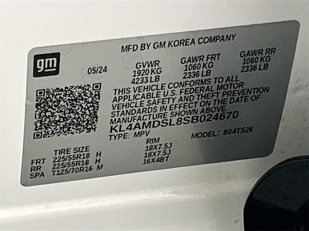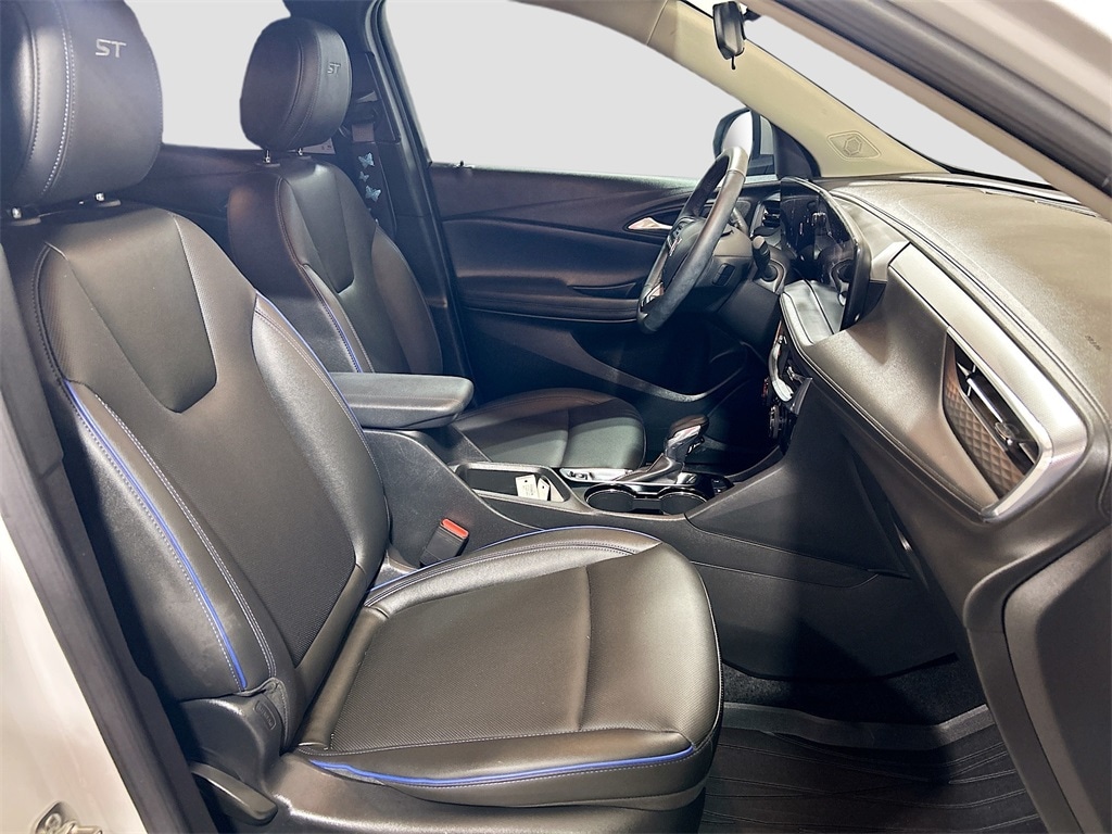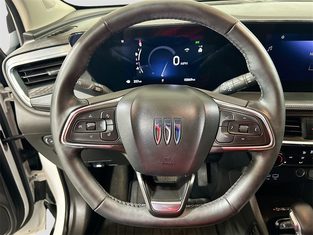2 USB Ports (1 Type-A, 1 Type-C), 2-Way Power Driver Lumbar Control, 4-Way Manual Passenger Seat Adjuster, 4-Wheel Disc Brakes, 5.45 Final Drive Axle Ratio, 6 Speakers, 6-Way Manual Driver Seat Adjuster, 8-Way Power Driver Seat Adjuster, ABS brakes, Adaptive Cruise Control, Advanced Technology Package, Air Conditioning, All-Weather Floor Liners (LPO), Alloy wheels, AM/FM radio: SiriusXM, Auto High-beam Headlights, Automatic temperature control, Brake assist, Bumpers: body-color, Cargo Liner (LPO), Comfort Package, Compass, Delay-off headlights, Driver door bin, Driver vanity mirror, Dual front impact airbags, Dual front side impact airbags, Electronic Stability Control, Emergency communication system: OnStar and Buick connected services capable, Enhanced Performance 6-Speaker System, Flat-Folding Front Passenger Seatback, Front anti-roll bar, Front Bucket Seats, Front Center Armrest, Front License Plate Bracket, Front reading lights, Front wheel independent suspension, Fully automatic headlights, HD Surround Vision, Heated door mirrors, Heated Driver & Front Passenger Seats, Heated Steering Wheel, Illuminated entry, Knee airbag, Leatherette Seat Trim, Low tire pressure warning, Occupant sensing airbag, Outside temperature display, Overhead airbag, Overhead console, Panic alarm, Passenger door bin, Passenger vanity mirror, Power door mirrors, Power steering, Power windows, Preferred Equipment Group 1SD, Radio data system, Radio: Audio System w/AM/FM, Rear Center Armrest, Rear Park Assist, Rear reading lights, Rear side impact airbag, Rear window defroster, Rear window wiper, Remote keyless entry, Ride & Handling Suspension, Security system, SiriusXM Trial Subscription, Speed control, Speed-sensing steering, Split folding rear seat, Spoiler, Sport steering wheel, Steering wheel mounted audio controls, Tachometer, Telescoping steering wheel, Tilt steering wheel, Traction control, Trip computer, Variably intermittent wipers, Wheels: 18" Gloss Black Aluminum, Wireless Apple CarPlay/Wireless Android Auto, Wireless Charging.