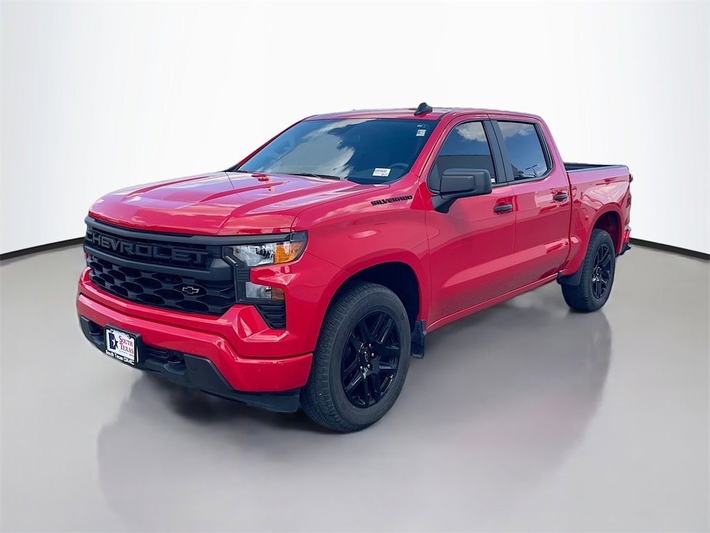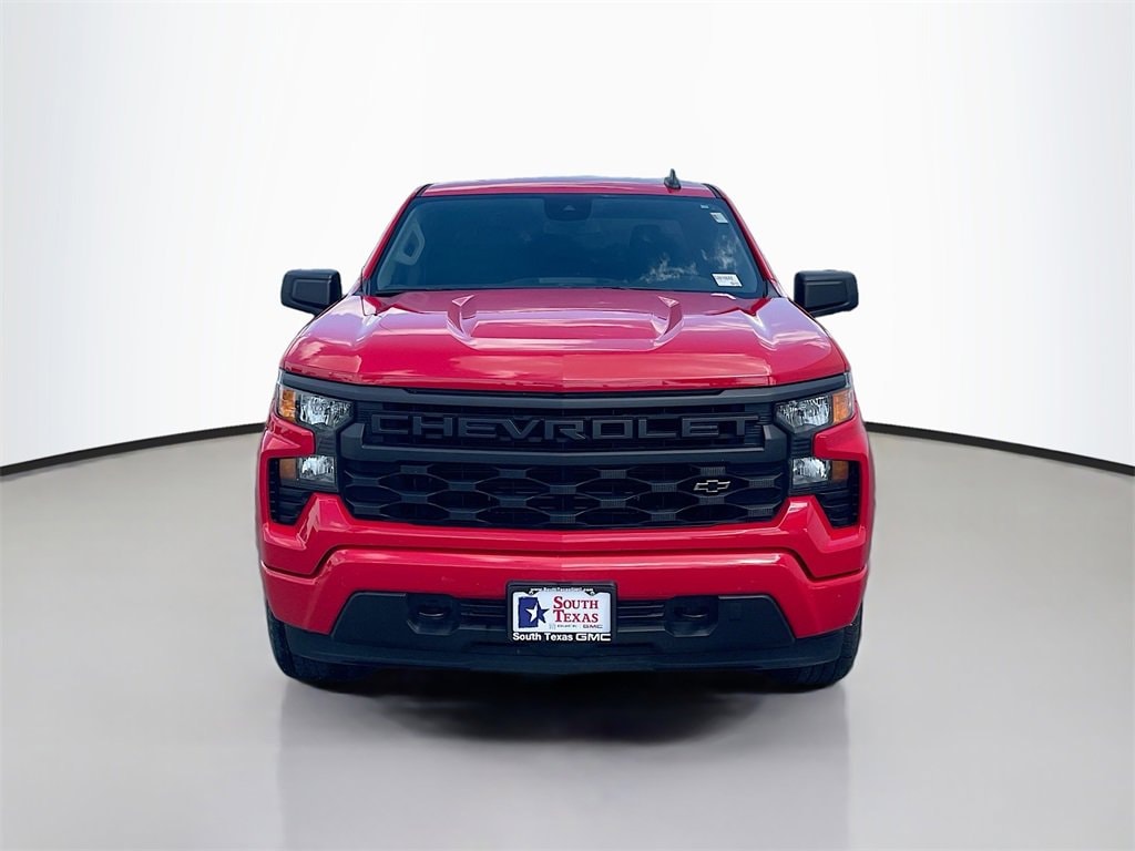Clean CARFAX. CARFAX One-Owner. Red Hot 2023 Chevrolet Silverado 1500 Custom RWD 8-Speed Automatic 2.7L TurboWE ARE OPEN FOR ALL YOUR SALES AND SERVICE NEEDS! COMPLETE ONLINE BUYING EXPERIENCE AVAILABLE!CALL 956-661-5000 TO SCHEDULE YOUR CONTACT FREE TEST DRIVE TODAY!8-Speed Automatic, Black Cloth, 10-Way Power Driver Seat w/Lumbar, 120-Volt Bed Mounted Power Outlet, 120-Volt Instrument Panel Power Outlet, 3.42 Rear Axle Ratio, 3.5 Monochromatic Display Driver Info Center, 4-Wheel Disc Brakes, 40/20/40 Front Split-Bench Seat, 6 Speakers, 6-Speaker Audio System, ABS brakes, Air Conditioning, Alloy wheels, AM/FM radio: SiriusXM, Apple CarPlay/Android Auto, Auto High-beam Headlights, Automatic Emergency Braking, Bluetooth® For Phone, Brake assist, Bumpers: body-color, Chevrolet Connected Access Capable, Cloth Seat Trim, Color-Keyed Carpeting Floor Covering, Compass, Custom Convenience Package, Custom Value Package, Deep-Tinted Glass, Delay-off headlights, Driver door bin, Driver vanity mirror, Dual front impact airbags, Dual front side impact airbags, Dual Rear USB Ports (Charge Only), Electric Rear-Window Defogger, Electrical Steering Column Lock, Electronic Cruise Control, Electronic Stability Control, EZ Lift Power Lock & Release Tailgate, Following Distance Indicator, Forward Collision Alert, Front anti-roll bar, Front Black Bowtie Emblem (LPO), Front Center Armrest w/Storage, Front Frame-Mounted Black Recovery Hooks, Front License Plate Kit, Front Pedestrian Braking, Front reading lights, Front Rubberized Vinyl Floor Mats, Front wheel independent suspension, Fully automatic headlights, HD Rear Vision Camera, Heated door mirrors, High Capacity Suspension Package, Hitch Guidance, Illuminated entry, IntelliBeam Automatic High Beam On/Off, Lane Keep Assist w/Lane Departure Warning, LED Cargo Area Lighting, Low tire pressure warning, Manual Tilt Wheel Steering Column, Not Equipped w/Rear USB Ports, Not Equipped w/Steering Column Lock, Occupant sensing airbag, OnStar & Chevrolet Connected Services Capable, Outside temperature display, Overhead airbag, Overhead console, Panic alarm, Passenger door bin, Passenger vanity mirror, Power door mirrors, Power driver seat, Power Front Windows w/Driver Express Up/Down, Power Front Windows w/Passenger Express Down, Power Rear Windows w/Express Down, Power steering, Power windows, Preferred Equipment Group 1CX, Premium audio system: Chevrolet Infotainment 3, Radio data system, Radio: Chevrolet Infotainment 3 System, Rear 60/40 Folding Bench Seat (Folds Up), Rear reading lights, Rear Rubberized-Vinyl Floor Mats, Rear step bumper, Rear window defroster, Remote Keyless Entry, Remote keyless entry, Remote Vehicle Starter System, Security system, SiriusXM Radio, Speed control, Speed-sensing steering, Split folding rear seat, Standard Tailgate, Tachometer, Theft Deterrent System (Unauthorized Entry), Tilt steering wheel, Traction control, Trailering Package, Trip computer, Variably intermittent wipers, Voltmeter, Wheels: 20 x 9 Bright Silver Painted Aluminum, Wheels: 20 x 9 High Gloss Black Painted Alum, Wi-Fi Hot Spot Capable, Wireless Phone Projection, 8-Speed Automatic, Black Cloth.Odometer is 15288 miles below market average!