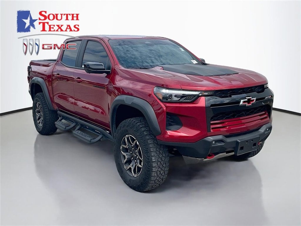 Clean CARFAX. Radiant Red Tintcoat 2024 Chevrolet Colorado ZR2 4WD 8-Speed Automatic 2.7L I4 Turbocharged DOHC 16V LEV3-ULEV50 310hpWE ARE OPEN FOR ALL YOUR SALES AND SERVICE NEEDS! COMPLETE ONLINE BUYING EXPERIENCE AVAILABLE!CALL 956-661-5000 TO SCHEDULE YOUR CONTACT FREE TEST DRIVE TODAY!4WD, 1st & 2nd Row All-Weather Floor Liner (LPO), 3.42 Rear Axle Ratio, 4-Way Manual Passenger Seat Adjuster, 4-Wheel Disc Brakes, 6 Speakers, 6-Speaker Audio System Feature, 8-Way Power Driver Seat Adjuster, ABS brakes, Adaptive Cruise Control, Air Conditioning, Alloy wheels, AM/FM radio: SiriusXM, Apple CarPlay/Android Auto, Auto High-beam Headlights, Auto-dimming Rear-View mirror, Automatic Emergency Braking, Automatic temperature control, Black Nameplates (LPO), Blind Zone Steering Assist w/Trailering, Brake assist, Cargo Area Lamps (LPO), Chevy Safety Assist, Cloth/Evotex Seat Trim, Compass, Delay-off headlights, Driver door bin, Driver vanity mirror, Dual front impact airbags, Dual front side impact airbags, Electronic Automatic Cruise Control, Electronic Stability Control, Following Distance Indicator, Forward Collision Alert, Front anti-roll bar, Front Bucket Seats, Front Center Armrest, Front dual zone A/C, Front fog lights, Front License Plate Kit, Front Passenger Seatback Map Pocket, Front Pedestrian & Bicyclist Braking, Front reading lights, Front wheel independent suspension, HD Surround Vision, Heated door mirrors, Heated Driver & Front Passenger Seats, Heated front seats, Illuminated entry, IntelliBeam Automatic High Beam On/Off, Lane Keep Assist w/Lane Departure Warning, Low tire pressure warning, Navigation System, Occupant sensing airbag, Outside temperature display, Overhead airbag, Overhead console, Panic alarm, Passenger door bin, Passenger vanity mirror, Power door mirrors, Power Driver Lumbar Control Seat Adjuster, Power driver seat, Power Sliding Glass w/Manual Shade Sunroof, Power steering, Power windows, Preferred Equipment Group 4ZR, Radio data system, Radio: 11.3 Diagonal Advanced Color LCD Display, Rear Cross Traffic Braking, Rear Park Assist, Rear Pedestrian Alert, Rear reading lights, Rear step bumper, Rear window defroster, Rear-Window Electric Defogger, Remote keyless entry, Removable Front & Rear Off-Road Assist Steps (LPO), Safety Package, Security system, SiriusXM Radio, Speed control, Speed-sensing steering, Split folding rear seat, Steering Wheel Mounted Audio Controls, Steering wheel mounted audio controls, Tachometer, Technology Package, Telescoping steering wheel, Tilt steering wheel, Traction control, Trip computer, Variably intermittent wipers, Wheels: 17 x 8 Graphite & Oxide Gold Aluminum, Wireless Phone Projection, ZR2 Off-Road Package, 4WD.Awards:* Motor Trend Truck of the Year