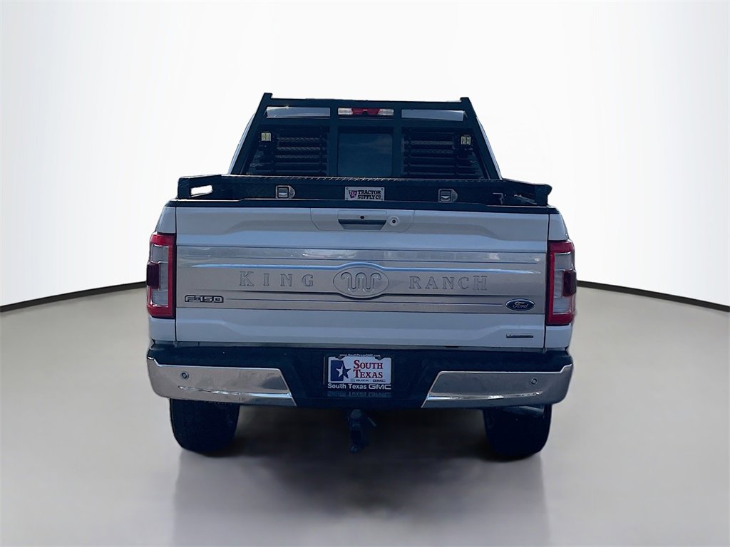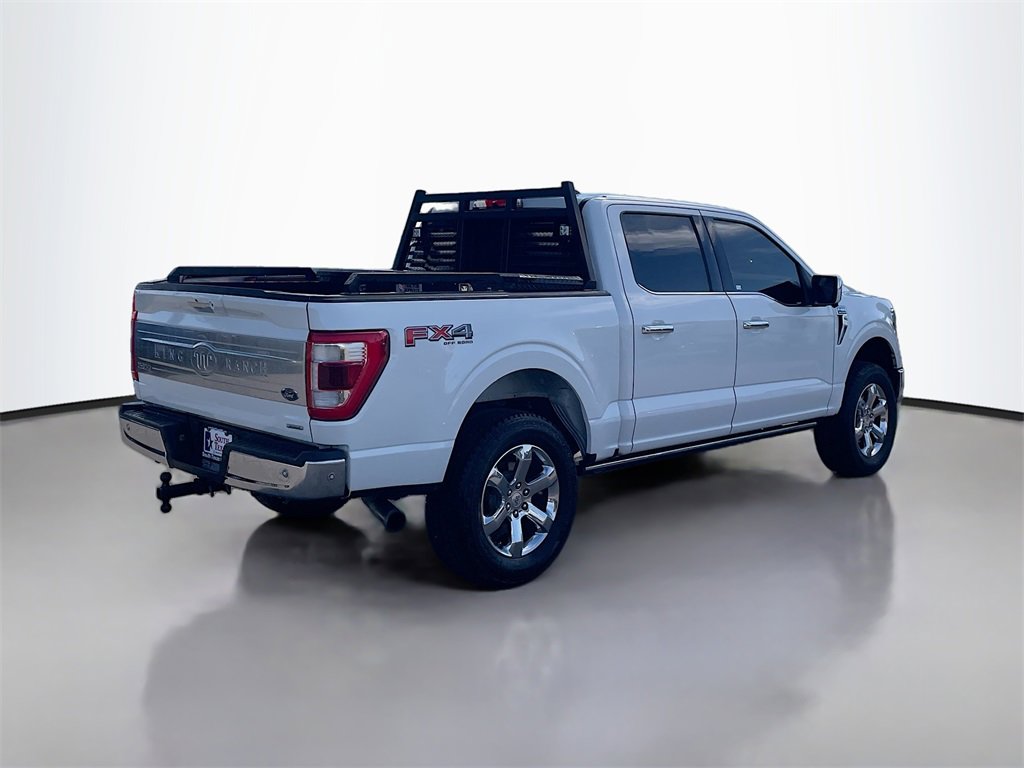4WD, 18 Machined-Aluminum Wheels, 20 Machined-Aluminum Wheels, 360 Degree Camera, 4-Wheel Disc Brakes, 4x4 FX4 Off-Road Bodyside Decal, 8 Speakers, ABS brakes, Active Park Assist 2.0, Adjustable pedals, Air Conditioning, Alloy wheels, AM/FM radio: SiriusXM with 360L, Auto High-beam Headlights, Auto tilt-away steering wheel, Auto-dimming door mirrors, Auto-dimming Rear-View mirror, Automatic temperature control, BlueCruise Hands-Free Driving, Brake assist, Bright Belt Moldings, Chrome Door Handles w/Body-Color Strap, Chrome Skull Caps on Exterior Mirrors, Class IV Trailer Hitch Receiver, Compass, Delay-off headlights, Driver door bin, Driver vanity mirror, Dual front impact airbags, Dual front side impact airbags, Electronic Stability Control, Emergency communication system: SYNC 4 911 Assist, Equipment Group 601A High, Extended Range 36 Gallon Fuel Tank, Exterior Parking Camera Rear, Ford Co-Pilot360 Active 2.0 Package, Front anti-roll bar, Front Bucket Seats, Front Center Armrest, Front dual zone A/C, Front fog lights, Front reading lights, Front wheel independent suspension, Fully automatic headlights, FX4 Off-Road Package, Garage door transmitter, Genuine wood console insert, Genuine wood dashboard insert, Genuine wood door panel insert, Heated door mirrors, Heated front seats, Heated rear seats, Heated steering wheel, Hill Descent Control, Illuminated entry, Integrated Trailer Brake Controller, Interior Work Surface, King Ranch Chrome Appearance Package, King Ranch Leather Bucket Seats, King Ranch Monochromatic Paint Package, LED Sideview Mirror Spotlights, Low tire pressure warning, Max Trailer Tow Package, Memory seat, Monotube Rear Shocks, Multi-Contour Driver & Passenger Seats, Navigation system: Connected Navigation (90-Day Trial), Occupant sensing airbag, Off-Road Tuned Front Shock Absorbers, Outside temperature display, Overhead airbag, Overhead console, Painted Body-Color Wheellip Molding, Panic alarm, Partitioned Lockable Fold-Flat Storage, Passenger door bin, Passenger vanity mirror, Pedal memory, Power door mirrors, Power driver seat, Power passenger seat, Power steering, Power Tailgate, Power windows, Power-Deployable Running Boards, Pro Trailer Backup Assist, Radio data system, Radio: B&O Sound System by Bang & Olufsen, Radio: B&O Unleashed Sound System by Bang & Olufsen, Rain sensing wipers, Rear reading lights, Rear seat center armrest, Rear step bumper, Rear window defroster, Remote keyless entry, Rock Crawl Mode, Security system, Speed control, Speed-sensing steering, Split folding rear seat, Steering wheel memory, Steering wheel mounted audio controls, SYNC 4 w/Enhanced Voice Recognition, Tachometer, Telescoping steering wheel, Tilt steering wheel, Traction control, Tray Style Floor Liner, Trip computer, Turn signal indicator mirrors, Twin Panel Moonroof, Variably intermittent wipers, Ventilated front seats, Voltmeter, Wheels: 20 Chrome-Like PVD, 4WD.