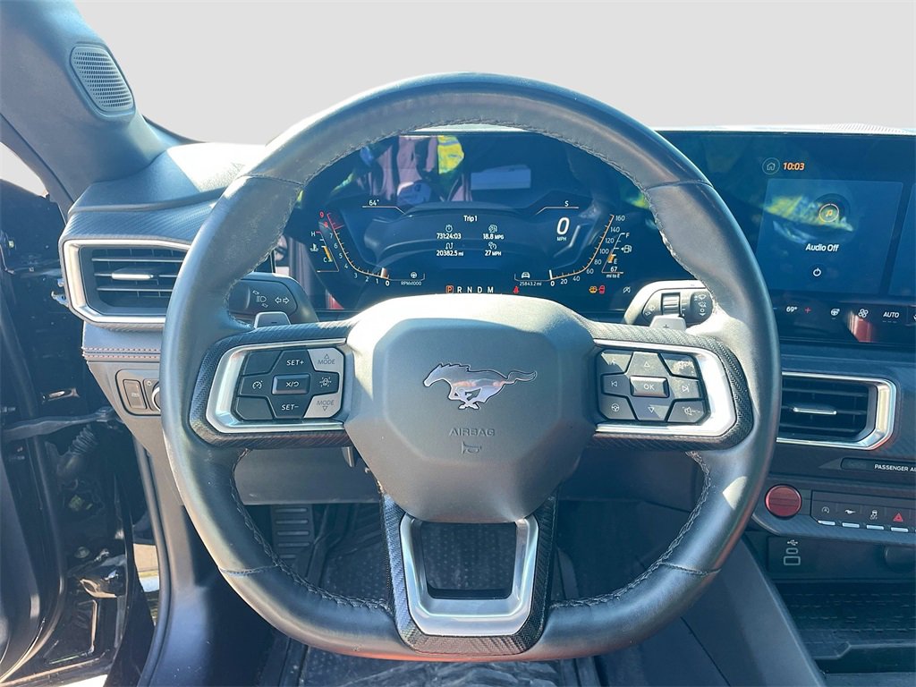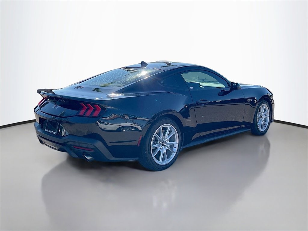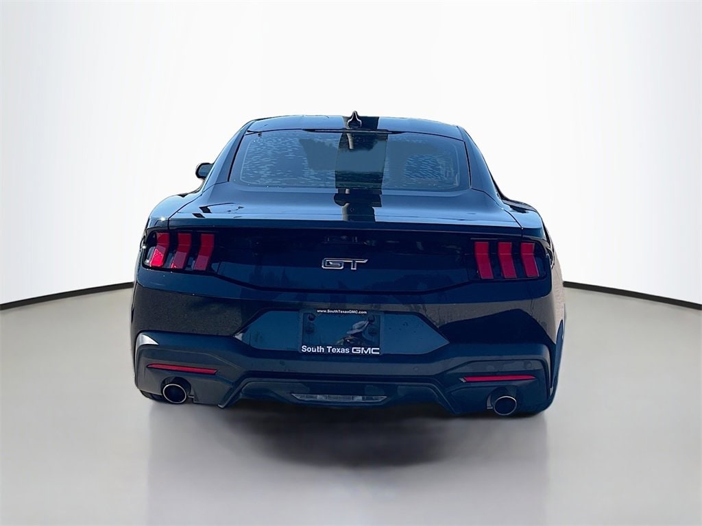 CARFAX One-Owner. Shadow Black 2024 Ford Mustang GT Premium RWD 10-Speed Automatic 5.0L V8 Ti-VCTWE ARE OPEN FOR ALL YOUR SALES AND SERVICE NEEDS! COMPLETE ONLINE BUYING EXPERIENCE AVAILABLE!CALL 956-661-5000 TO SCHEDULE YOUR CONTACT FREE TEST DRIVE TODAY!4-Wheel Disc Brakes, ABS brakes, Air Conditioning, Alloy wheels, AM/FM Stereo, Auto High-beam Headlights, Automatic temperature control, Brake assist, Bumpers: body-color, Compass, Delay-off headlights, Driver door bin, Driver vanity mirror, Dual front impact airbags, Dual front side impact airbags, Electronic Stability Control, Emergency communication system: 911 Assist, Equipment Group 400A Standard Package, Exterior Parking Camera Rear, Four wheel independent suspension, Front anti-roll bar, Front Bucket Seats, Front Center Armrest, Front reading lights, Fully automatic headlights, Illuminated entry, Knee airbag, Leather Shift Knob, Leather steering wheel, Low tire pressure warning, Occupant sensing airbag, Outside temperature display, Overhead airbag, Overhead console, Panic alarm, Passenger door bin, Passenger vanity mirror, Power door mirrors, Power steering, Power windows, Radio data system, Rain sensing wipers, Rear anti-roll bar, Rear Parking Sensors, Rear window defroster, Remote keyless entry, Speed control, Speed-sensing steering, Speed-Sensitive Wipers, Split folding rear seat, Spoiler, Sport steering wheel, Steering wheel mounted audio controls, SYNC 4.0 QNX, Tachometer, Telescoping steering wheel, Tilt steering wheel, Traction control, Trip computer, Variably intermittent wipers, Voltmeter, Wheels: 19 x 8.5 Shadow Silver-Painted Aluminum.