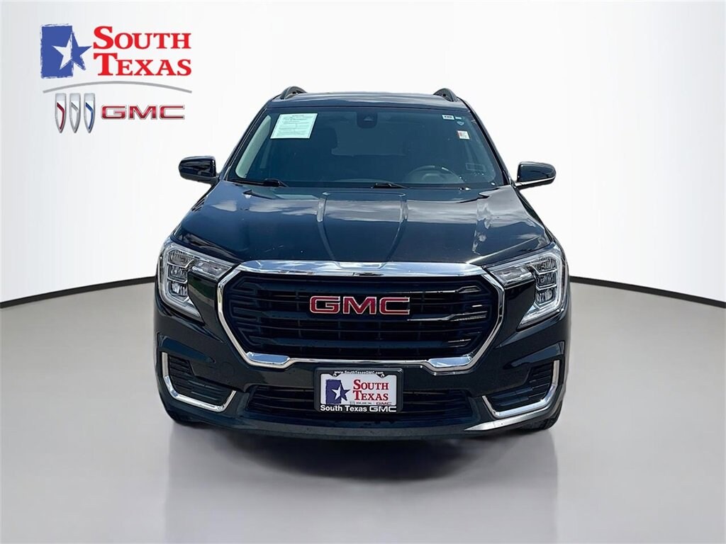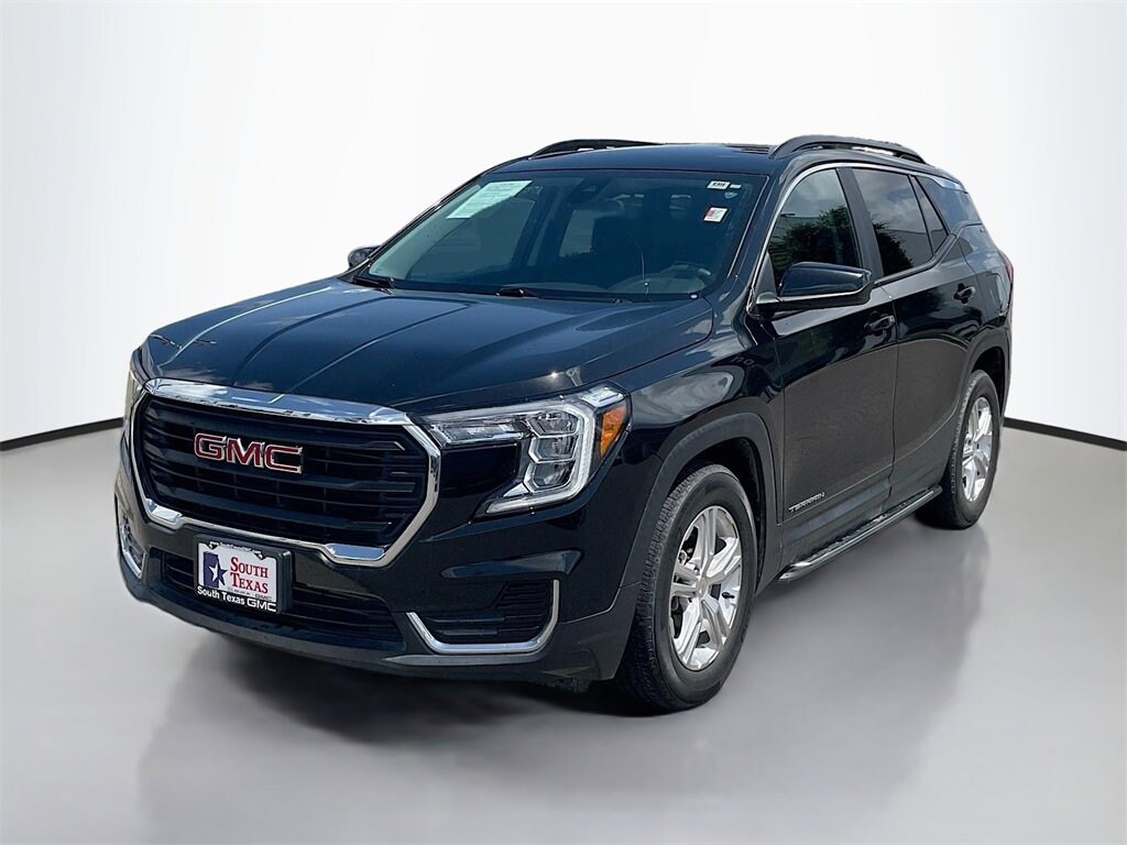 Clean CARFAX. Ebony Twilight Metallic 2022 GMC Terrain SLE FWD 9-Speed Automatic 1.5L DOHCWE ARE OPEN FOR ALL YOUR SALES AND SERVICE NEEDS! COMPLETE ONLINE BUYING EXPERIENCE AVAILABLE!CALL 956-661-5000 TO SCHEDULE YOUR CONTACT FREE TEST DRIVE TODAY!2 USB Data Ports w/Auxiliary Input Jack, 3 Years of OnStar & Connected Services Plan, 3.47 Axle Ratio, 4-Way Manual Driver's Seat, 4-Way Manual Front Passenger Seat, 4-Wheel Disc Brakes, 4.2 Multi-Color Driver Information Screen, 6 Speakers, 6-Speaker Audio System Feature, 8-Way Power Driver Seat Adjuster, ABS brakes, Air Conditioning, Alloy wheels, AM/FM radio: SiriusXM, Auto High-beam Headlights, Auto-dimming Rear-View mirror, Automatic temperature control, Bluetooth® For Phone, Brake assist, Bumpers: body-color, Compass, Delay-off headlights, Driver & Front Passenger Heated Seats, Driver Convenience Package, Driver door bin, Driver vanity mirror, Dual front impact airbags, Dual front side impact airbags, Dual-Zone Automatic Climate Control, Electronic Stability Control, Emergency communication system: OnStar Guidance, Four wheel independent suspension, Front anti-roll bar, Front Bucket Seats, Front Center Armrest, Front reading lights, Fully automatic headlights, Heated door mirrors, Hit The Road Package, Illuminated entry, License Plate Front Mounting Package, Low tire pressure warning, Molded Assist Steps, Occupant sensing airbag, Outside temperature display, Overhead airbag, Overhead console, Panic alarm, Passenger door bin, Passenger vanity mirror, Power door mirrors, Power Driver Lumbar Control, Power Programmable Rear Liftgate, Power steering, Power windows, Preferred Equipment Group 3SA, Premium Cloth Seat Trim, Radio data system, Radio: GMC Infotainment Audio System w/7 Display, Rear anti-roll bar, Rear seat center armrest, Rear window defroster, Rear window wiper, Remote keyless entry, Remote Start, Roof Rack Cross Rails (LPO), Roof-Mounted Luggage Rack Side Rails, Security system, SiriusXM Radio, Speed control, Speed-sensing steering, Split folding rear seat, Spoiler, Steering wheel mounted audio controls, Tachometer, Telescoping steering wheel, Tilt steering wheel, Traction control, Trip computer, Variably intermittent wipers, Wheels: 17 x 7 Silver Painted Aluminum, Wireless Apple CarPlay/Wireless Android Auto.25/30 City/Highway MPG