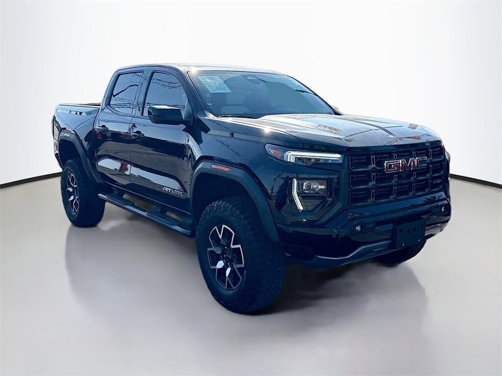 4WD, 120-Volt Bed Mounted Power Outlet, 2 1st Row USB Charge/Data Ports, 2 Rear USB Ports in Center Console (Charge-Only), 220 Amps Alternator, 3.42 Rear Axle Ratio, 4-Wheel Disc Brakes, 6-Way Power Passenger Seat Adjuster, 7 Speakers, 8-Way Power Driver Seat Adjuster, ABS brakes, Adaptive Cruise Control, Air Conditioning, Alloy wheels, AM/FM radio: SiriusXM, Apple CarPlay/Android Auto, Auto High-beam Headlights, Auto-dimming Rear-View mirror, Automatic Emergency Braking, Automatic Stop/Start, Automatic temperature control, Blind Zone Steering Assist, Brake assist, Bumpers: body-color, Canyon Pro Safety, Compass, Delay-off headlights, Driver & Front Passenger Illuminated Visors, Driver & Front Passenger Ventilated Seats, Driver door bin, Driver Memory, Driver Mode Selector, Driver Seatback Map Pocket, Driver vanity mirror, Driver-Selectable Full-Locking Front Differential, Driver-Selectable Full-Locking Rear Differential, Dual front impact airbags, Dual front side impact airbags, Dual-Zone Automatic Air Conditioning, Electronic Stability Control, EZ-Lift & Lower Tailgate, Following Distance Indicator, Forward Collision Alert, Front anti-roll bar, Front Bucket Seats, Front Center Armrest, Front dual zone A/C, Front fog lights, Front LED Fog Lamps, Front License Plate Kit, Front Passenger Seatback Map Pocket, Front Pedestrian & Bicyclist Braking, Front reading lights, Front wheel independent suspension, HD Surround Vision, Heads-Up Display, Heated door mirrors, Heated Driver & Front Passenger Seats, Heated front seats, Heated Power-Adjustable Outside Mirrors, Heated Steering Wheel, Heated steering wheel, Illuminated entry, Inside Rear-View Auto-Dimming Mirror, Integrated Trailer Brake Controller, IntelliBeam Automatic High Beam On/Off, Interior Overhead Courtesy Light w/Dual Reading Lamp, Lane Keep Assist w/Lane Departure Warning, Low tire pressure warning, Manual Rear-Sliding Window, Memory seat, Multicolor 6.3 Diagonal Head-Up Display, MultiStow Tailgate, Navigation System, Occupant sensing airbag, Outside temperature display, Overhead airbag, Overhead console, Panic alarm, Passenger door bin, Passenger vanity mirror, Perforated Leather-Appointed Seat Trim, Power door mirrors, Power Driver Lumbar Control Seat Adjuster, Power driver seat, Power Inner Sliding Glass Sunroof w/Manual Shade, Power Passenger Lumbar Control Seat Adjuster, Power passenger seat, Power steering, Power windows, Preferred Equipment Group 4TX, Premium 7-Speaker Bose Sound System, Radio data system, Radio: 11.3 Diagonal Premium GMC Infotainment Sys, Rear Center Fold-Down Armrest w/2 Cupholders, Rear Cross Traffic Braking, Rear of Console 120-Volt Power Outlet, Rear Pedestrian Alert, Rear reading lights, Rear seat center armrest, Rear step bumper, Rear window defroster, Rear-Window Electric Defogger, Remote keyless entry, Remote Vehicle Starter System, Safety Alert Seat, Security system, SiriusXM w/360L, Speed control, Speed-sensing steering, Split folding rear seat, Spray-On Bedliner, Steering wheel mounted audio controls, Stop/Start System Disable Button Engine Control, Tachometer, Tailgate Keyed Cylinder Lock, Telescoping steering wheel, Tilt & Telescopic Manual Steering Column, Tilt steering wheel, Traction control, Trailering App System, Trailering Package, Trip computer, Ultrasonic Rear Park Assist, Variably intermittent wipers, Ventilated front seats, Wheels: 17 x 8 Black High Gloss Machined Finish, Wireless Apple CarPlay/Wireless Android Auto, Wireless Charging, 4WD.