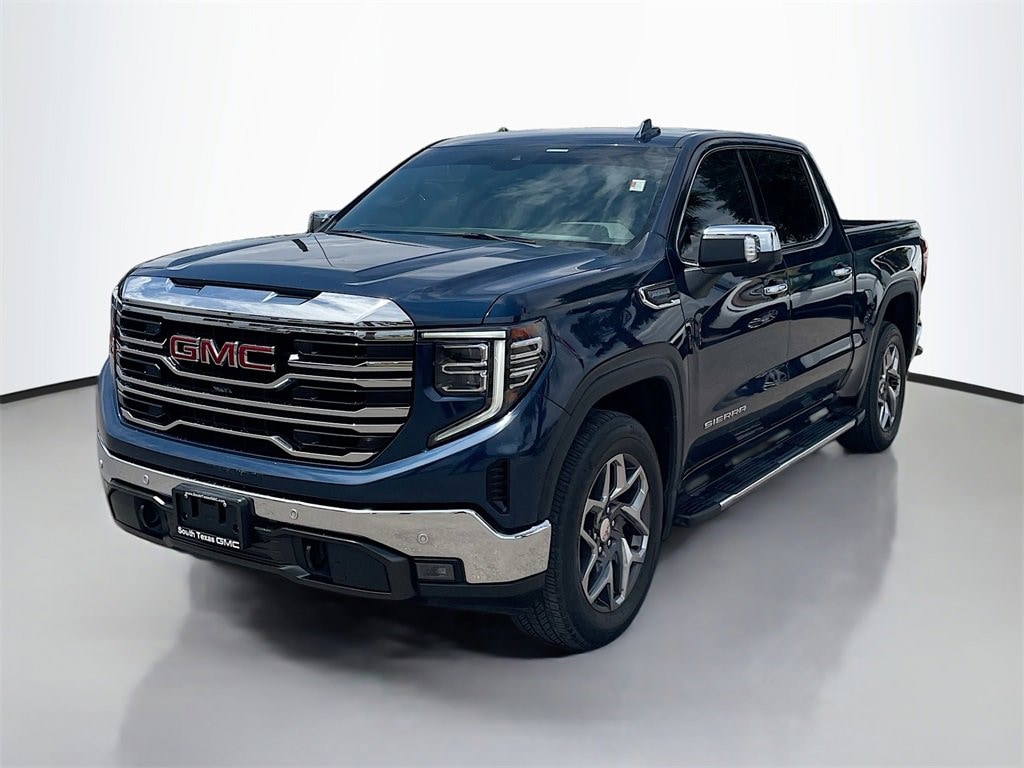 CARFAX One-Owner. Pacific Blue Metallic 2023 GMC Sierra 1500 SLT RWD 10-Speed Automatic EcoTec3 5.3L V8