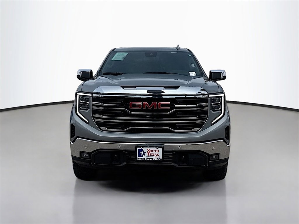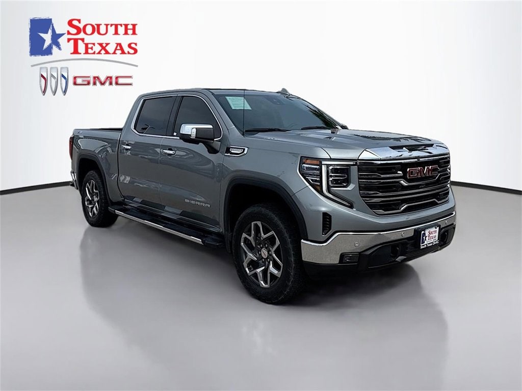 Clean CARFAX. CARFAX One-Owner. Sterling Metallic 2023 GMC Sierra 1500 SLT 4WD 10-Speed Automatic EcoTec3 5.3L V8WE ARE OPEN FOR ALL YOUR SALES AND SERVICE NEEDS! COMPLETE ONLINE BUYING EXPERIENCE AVAILABLE!CALL 956-661-5000 TO SCHEDULE YOUR CONTACT FREE TEST DRIVE TODAY!10-Speed Automatic, 4WD, Jet Black Leather, 10-Way Power Driver Seat Adjuster w/Lumbar, 10-Way Power Passenger Seat Adjuster w/Lumbar, 120-Volt Bed Mounted Power Outlet, 120-Volt Instrument Panel Power Outlet, 170 Amp Alternator, 2 Charge/Data USB Ports, 2 Charge/Data USB Ports Inside Center Console, 2 Type-C Charge-Only Rear USB Ports, 20 Polished Aluminum Wheels, 3.23 Rear Axle Ratio, 4-Wheel Disc Brakes, 6 Speakers, 6-Speaker Audio System Feature, ABS brakes, Adaptive Cruise Control, Air Conditioning, Alloy wheels, AM/FM radio, Apple CarPlay/Android Auto, Auto High-beam Headlights, Auto-dimming door mirrors, Auto-dimming Rear-View mirror, Auto-Locking Rear Differential, Automatic Emergency Braking, Automatic temperature control, Auxiliary External Transmission Oil Cooler, Brake assist, Buckle to Drive, Bumpers: chrome, Chrome Header & Chrome Grille Insert Bars, Chrome Wheel To Wheel Assist Steps, Color-Keyed Carpeting Floor Covering, Compass, Deep-Tinted Glass, Delay-off headlights, Driver door bin, Driver Memory, Driver vanity mirror, Dual Exhaust System, Dual front impact airbags, Dual front side impact airbags, Electric Rear-Window Defogger, Electrical Steering Column Lock, Electronic Precision Shift, Electronic Stability Control, Emergency communication system: OnStar and GMC connected services capable, Floor-Mounted Center Console, Following Distance Indicator, Forward Collision Alert, Front 40/20/40 Split-Bench Seat, Front anti-roll bar, Front Bucket Seats, Front Center Armrest w/Storage, Front dual zone A/C, Front fog lights, Front Frame-Mounted Black Recovery Hooks, Front License Plate Kit, Front Pedestrian Braking, Front Rainsensing Wipers, Front reading lights, Front wheel independent suspension, Fully automatic headlights, GMC Connected Access Capable, GMC MultiPro Tailgate Step Lights (LPO), HD Rear Vision Camera, HD Surround Vision, Heated 2nd Row Outboard Seats, Heated door mirrors, Heated Driver & Front Outboard Passenger Seating, Heated front seats, Heated steering wheel, Heavy-Duty Air Filter, High Capacity Suspension Package, Hill Descent Control, Hitch Guidance, Hitch Guidance w/Hitch View, Illuminated entry, In-Vehicle Trailering App, Integrated Trailer Brake Controller, IntelliBeam Automatic High Beam On/Off, Keyless Open & Start, Lane Keep Assist w/Lane Departure Warning, LED Cargo Area Lighting, Low tire pressure warning, Manual Tilt-Wheel & Telescoping Steering Column, Memory seat, Navigation System, Not Equipped w/Steering Column Lock, Occupant sensing airbag, Off-Road Suspension, OnStar & GMC Connected Services Capable, Outside temperature display, Overhead airbag, Overhead console, Panic alarm, Passenger door bin, Passenger vanity mirror, Perf Leather-Appointed Front Outboard Seat Trim, Perimeter Lighting, Power Door Locks, Power door mirrors, Power driver seat, Power Front Passenger Windows w/Express Up/Down, Power Front Windows w/Driver Express Up/Down, Power passenger seat, Power Rake & Telescoping Steering Column, Power Rear Windows w/Express Down, Power Sliding Rear Window w/Rear Defogger, Power steering, Power windows, Preferred Equipment Group 4SA, Premium audio system: GMC Infotainment System, Premium Bose 7-Speaker Sound System, ProGrade Trailering System, Push Button Start, Radio data system, Radio: Premium GMC Infotainment Audio System, Rain sensing wipers, Rear Cross Traffic Braking, Rear Pedestrian Detection, Rear reading lights, Rear seat center armrest, Rear step bumper, Rear Underseat Storage (LPO), Rear Wheelhouse Liners, Rear window defroster, Remote keyless entry, Remote Vehicle Starter System, Safety Alert Seat, Security system, Sierra Safety Plus Package, SiriusXM w/360L, SLT Convenien