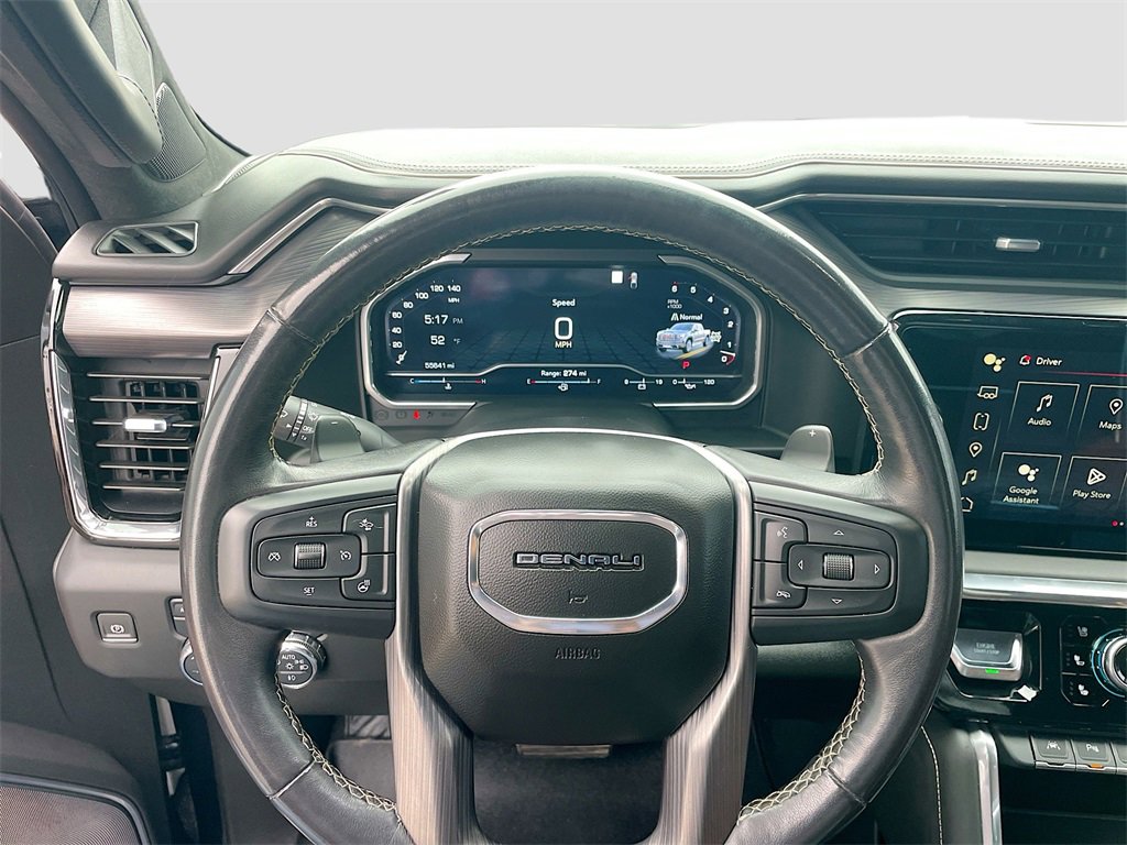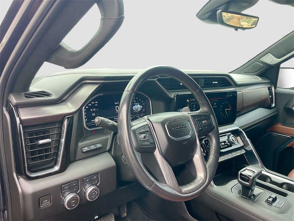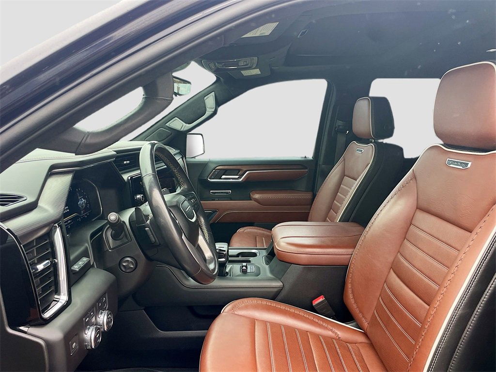 10-Speed Automatic, 4WD, Alpine Umber Leather, 12 Speakers, 120-Volt Bed Mounted Power Outlet, 120-Volt Instrument Panel Power Outlet, 16-Way Power Driver Seat Adjuster w/Lumbar, 16-Way Power Passenger Seat Adjuster w/Lumbar, 170 Amp Alternator, 2 Charge/Data USB Ports Inside Center Console, 2 Type-C Charge-Only Rear USB Ports, 2 USB Ports, 3.23 Rear Axle Ratio, 4-Wheel Disc Brakes, ABS brakes, Adaptive suspension, Air Conditioning, Alloy wheels, AM/FM radio, Apple CarPlay/Android Auto, Auto High-beam Headlights, Auto-dimming door mirrors, Auto-dimming Rear-View mirror, Auto-Locking Rear Differential, Automatic Emergency Braking, Automatic temperature control, Bed View Camera, Bose Premium Series w/12-Speaker System, Brake assist, Buckle to Drive, Bumpers: body-color, Chrome Recovery Hooks, Color-Keyed Carpeting Floor Covering, Compass, Deep-Tinted Glass, Delay-off headlights, Denali Premium Suspension w/Adaptive Ride Control, Driver door bin, Driver Memory, Driver vanity mirror, Dual front impact airbags, Dual front side impact airbags, Electric Rear-Window Defogger, Electrical Steering Column Lock, Electronic Stability Control, Emergency communication system: OnStar and GMC connected services capable, Floor-Mounted Center Console, Following Distance Indicator, Forward Collision Alert, Front anti-roll bar, Front Bucket Seats, Front Center Armrest, Front dual zone A/C, Front fog lights, Front License Plate Kit, Front Pedestrian Braking, Front Rainsensing Wipers, Front reading lights, Front wheel independent suspension, Full Grain Leather Seat Trim, Fully automatic headlights, Garage door transmitter, Genuine wood console insert, Genuine wood dashboard insert, Genuine wood door panel insert, GMC Connected Access Capable, GMC MultiPro Tailgate Step Lights (LPO), HD Surround Vision, Heads-Up Display, Heated 2nd Row Outboard Seats, Heated door mirrors, Heated Driver & Front Outboard Passenger Seating, Heated front seats, Heated rear seats, Heated steering wheel, Heavy-Duty Air Filter, Hill Descent Control, Hitch Guidance, Hitch Guidance w/Hitch View, Illuminated entry, In-Vehicle Trailering App, Integrated Trailer Brake Controller, IntelliBeam Automatic High Beam On/Off, Keyless Open & Start, Lane Keep Assist w/Lane Departure Warning, LED Cargo Area Lighting, Low tire pressure warning, Memory seat, Multicolor 15 Diagonal Head-Up Display, MultiPro Audio System by Kicker (LPO), Navigation System, Not Equipped w/Steering Column Lock, Occupant sensing airbag, OnStar & GMC Connected Services Capable, Outside temperature display, Overhead airbag, Overhead console, Panic alarm, Passenger door bin, Passenger vanity mirror, Perimeter Lighting, Power Door Locks, Power door mirrors, Power driver seat, Power Front Passenger Windows w/Express Up/Down, Power Front Windows w/Driver Express Up/Down, Power moonroof, Power passenger seat, Power Rake & Telescoping Steering Column, Power Rear Windows w/Express Down, Power Sliding Rear Window w/Rear Defogger, Power steering, Power Sunroof, Power windows, Preferred Equipment Group 5SB, Premium audio system: GMC Infotainment System, Push Button Start, Radio data system, Radio: Premium GMC Infotainment Audio System, Rain sensing wipers, Rear Cross Traffic Braking, Rear Pedestrian Detection, Rear reading lights, Rear seat center armrest, Rear step bumper, Rear Underseat Storage (LPO), Rear Wheelhouse Liners, Rear window defroster, Remote keyless entry, Remote Vehicle Starter System, Safety Alert Seat, Security system, SiriusXM w/360L, Speed control, Speed-sensing steering, Split folding rear seat, Spray-On Pickup Bed Liner w/Denali Logo, Steering Wheel Audio Controls