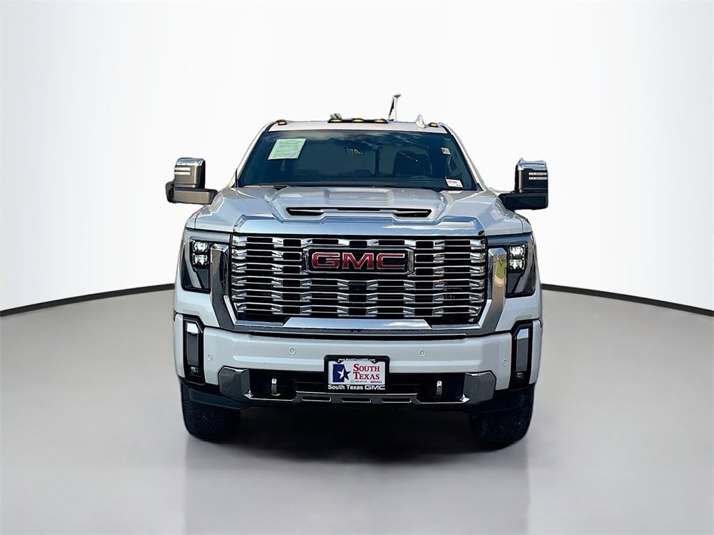 Clean CARFAX. White Frost Tricoat 2024 GMC Sierra 2500HD Denali 4WD 10-Speed Automatic Duramax 6.6L V8 TurbodieselWE ARE OPEN FOR ALL YOUR SALES AND SERVICE NEEDS! COMPLETE ONLINE BUYING EXPERIENCE AVAILABLE!CALL 956-661-5000 TO SCHEDULE YOUR CONTACT FREE TEST DRIVE TODAY!10-Speed Automatic, 4WD, Atmosphere/Brownstone Leather, 12-Way Power Driver Seat Adjuster w/Lumbar, 12-Way Power Passenger Seat Adjuster w/Lumbar, 120-Volt Bed Mounted Power Outlet, 120-Volt Instrument Panel Power Outlet, 2 Charge-Only Rear USB Ports, 2 Charge/Data USB Ports Inside Center Console, 2 USB Ports, 2-Speed Active Transfer Case, 220-Amp Alternator, 4-Wheel Disc Brakes, 7 Speakers, ABS brakes, Adaptive Cruise Control, Air Conditioning, All-Weather Floor Liners (LPO), Alloy wheels, AM/FM radio: SiriusXM with 360L, Apple CarPlay/Android Auto, Auto High-beam Headlights, Auto-dimming door mirrors, Auto-dimming Rear-View mirror, Automatic Emergency Braking, Automatic temperature control, Bed View Camera w/2 Trailer Camera Provisions, Body Color Wheel Arch Moldings (LPO), Bose Premium 7-Speaker Sound System, Brake assist, Buckle to Drive, Bumpers: body-color, Compass, Deep-Tinted Glass, Delay-off headlights, Denali Reserve Package, Driver door bin, Driver Memory, Driver vanity mirror, Dual front impact airbags, Dual front side impact airbags, Electric Rear-Window Defogger, Electronic Stability Control, Emergency communication system: OnStar and GMC connected services capable, Engine Block Heater, Exhaust Brake, Floor-Mounted Center Console, Following Distance Indicator, Forge Perforated Leather-Appointed Front Seat Trim, Forward Collision Alert, Front anti-roll bar, Front Bucket Seats, Front Center Armrest, Front dual zone A/C, Front fog lights, Front License Plate Kit, Front Pedestrian Braking, Front Rain-Sensing Wipers, Front reading lights, Front wheel independent suspension, Fully automatic headlights, Garage door transmitter, Genuine wood dashboard insert, Genuine wood door panel insert, GMC Connected Access Capable, GMC MultiPro Tailgate Step Lights (LPO), Gooseneck/5th Wheel Prep Package, HD Surround Vision, Heated 2nd Row Outboard Seats, Heated door mirrors, Heated Driver & Front Outboard Passenger Seats, Heated front seats, Heated rear seats, Heated steering wheel, Heavy-Duty 80 Amp Battery, High Idle Switch, Hill Descent Control, Hitch Guidance w/Hitch View, Hitch Package (LPO), Illuminated entry, In-Vehicle Trailering System App, Inside Rearview Auto-Dimming Rear Camera Mirror, Integrated Trailer Brake Controller, IntelliBeam Automatic High Beam On/Off, Keyless Open & Start, Lane Departure Warning System, LED Cargo Area Lighting, LED Smoked Amber Roof Marker Lamps, Low tire pressure warning, Manual Tilt-Wheel/Telescoping Steering Column, Memory seat, Multicolor 15 Diagonal Head-Up Display, Occupant sensing airbag, Off-Road Suspension, OnStar & GMC Connected Services Capable, Outside temperature display, Overhead airbag, Overhead console, Panic alarm, Passenger door bin, Passenger vanity mirror, Pickup Box, Polished Exhaust Tip, Power door mirrors, Power driver seat, Power Front Passenger Windows w/Express Up/Down, Power passenger seat, Power Sliding Rear Window w/Defogger, Power steering, Power Sunroof, Power windows, Preferred Equipment Group 5SA, Premium audio system: Premium GMC Infotainment System, Push Button Start, Radio: AM/FM w/Premium GMC Infotainment System, Rain sensing wipers, Rear Cross Traffic Alert, Rear reading lights, Rear seat center armrest, Rear step bumper, Rear Wheelhouse Liners, Rear window defroster, Remote keyless entry, Remote Vehicle Starter System, Safety Alert Seat, Security system, Signature Chrome Denali Grille, SiriusXM w/360L, Speed control, Speed-sensing steering, Split folding rear seat, Spray-On Bedliner w/Denali Logo, Steering Wheel Audio Controls, Steering wheel mounted audio controls, Tachometer, Technology Package, Telescoping steering wheel, Tilt steering wheel, Traction control,