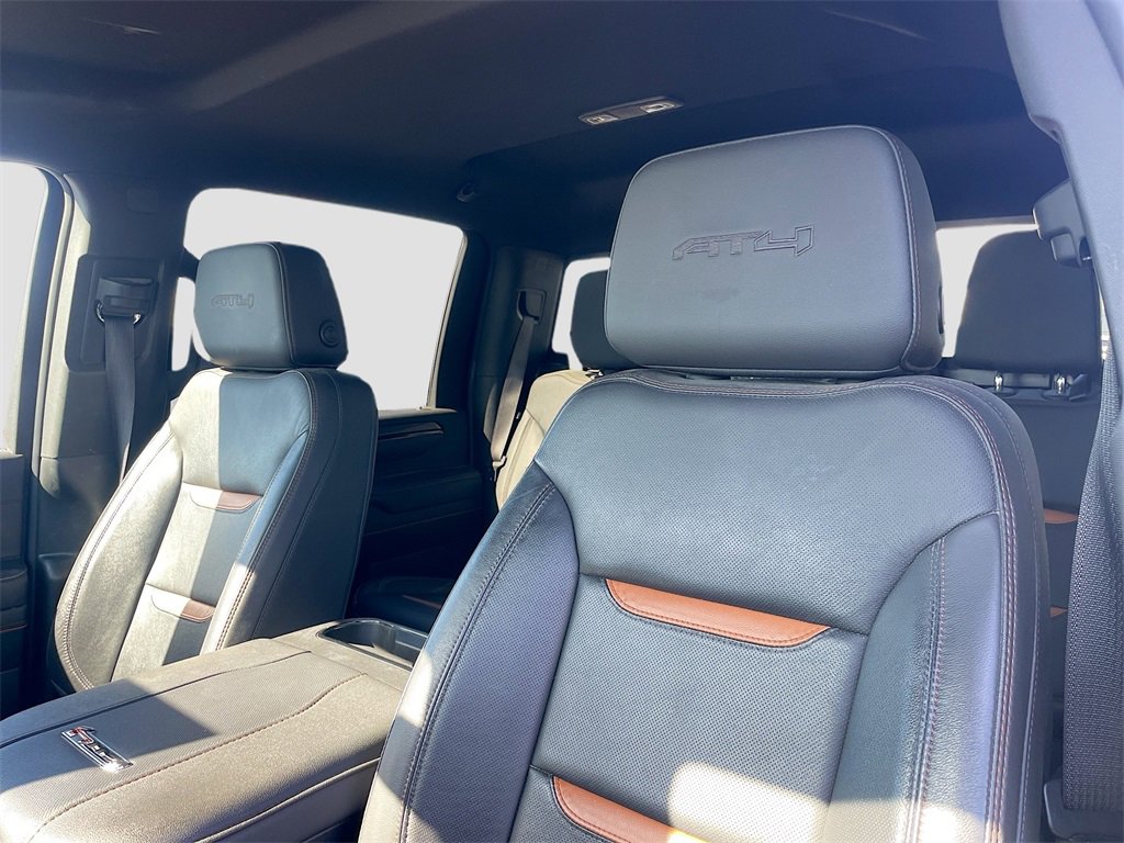 10-Speed Automatic, 4WD, Jet Black With Kalahari Accents Leather, 10-Way Power Driver Seat Adjuster w/Lumbar, 10-Way Power Passenger Seat Adjuster w/Lumbar, 120-Volt Bed Mounted Power Outlet, 120-Volt Instrument Panel Power Outlet, 2 Charge-Only Rear USB Ports, 2 Charge/Data USB Ports Inside Center Console, 2 USB Ports, 2-Speed Active Transfer Case, 220-Amp Alternator, 4-Wheel Disc Brakes, 7 Speakers, ABS brakes, Air Conditioning, Alloy wheels, AM/FM radio: SiriusXM with 360L, Apple CarPlay/Android Auto, AT4 Preferred Package, Auto High-beam Headlights, Auto-dimming door mirrors, Auto-dimming Rear-View mirror, Automatic Emergency Braking, Automatic temperature control, Bed View Camera w/2 Trailer Camera Provisions, Black Sport Step (LPO), Bose Premium 7-Speaker Sound System, Brake assist, Buckle to Drive, Bumpers: body-color, Compass, Deep-Tinted Glass, Delay-off headlights, Driver door bin, Driver Memory, Driver vanity mirror, Dual front impact airbags, Dual front side impact airbags, Electric Rear-Window Defogger, Electronic Stability Control, Emergency communication system: OnStar, Engine Block Heater, Exhaust Brake, Floor-Mounted Center Console, Following Distance Indicator, Forward Collision Alert, Front anti-roll bar, Front Bucket Seats, Front Center Armrest, Front dual zone A/C, Front fog lights, Front License Plate Kit, Front Pedestrian Braking, Front Prem Floor Liners w/Removable Carpet Insert, Front Rain-Sensing Wipers, Front reading lights, Front wheel independent suspension, Fully automatic headlights, Gloss Black Header Grille & Grille Insert Bars, HD Surround Vision, Heated 2nd Row Outboard Seats, Heated door mirrors, Heated Driver & Front Outboard Passenger Seats, Heated front seats, Heated rear seats, Heated steering wheel, Heavy-Duty 80 Amp Battery, High Idle Switch, Hill Descent Control, Hitch Guidance w/Hitch View, Illuminated entry, In-Vehicle Trailering System App, IntelliBeam Automatic High Beam On/Off, Keyless Open & Start, Lane Departure Warning System, LED Cargo Area Lighting, LED Smoked Amber Roof Marker Lamps, Low tire pressure warning, Manual Tilt-Wheel/Telescoping Steering Column, Memory seat, Occupant sensing airbag, Off-Road Suspension, OnStar Services Capable, Outside temperature display, Overhead airbag, Overhead console, Panic alarm, Passenger door bin, Passenger vanity mirror, Perforated Leather-Appointed Front Seat Trim, Pickup Box, Power door mirrors, Power driver seat, Power Front Passenger Windows w/Express Up/Down, Power passenger seat, Power Sliding Rear Window w/Defogger, Power steering, Power windows, Preferred Equipment Group 4SB, Push Button Start, Radio: AM/FM w/Premium GMC Infotainment System, Rain sensing wipers, Rear Cross Traffic Alert, Rear Prem Floor Liners w/Removable Carpet Insert, Rear reading lights, Rear seat center armrest, Rear step bumper, Rear Wheelhouse Liners, Rear window defroster, Remote keyless entry, Remote Vehicle Starter System, Safety Alert Seat, Security system, SiriusXM w/360L Trial Subscription, Speed control, Speed-sensing steering, Split folding rear seat, Spray-On Pickup Bedliner w/GMC Logo, Steering Wheel Audio Controls, Steering wheel mounted audio controls, Tachometer, Telescoping steering wheel, Tilt steering wheel, Traction control, Trailer Cam Provisions & Trailer Viewing Software, Trailer Side Blind Zone Alert, Trip computer, Turn signal indicator mirrors, Ultrasonic Front & Rear Park Assist, Unauthorized Entry Theft-Deterrent System, Universal Home Remote, Variably intermittent wipers, Ventilated Driver & Front Passenger Seats, Ventilated front seats, Voltmeter, Wheels: 20 High Gloss Black 8