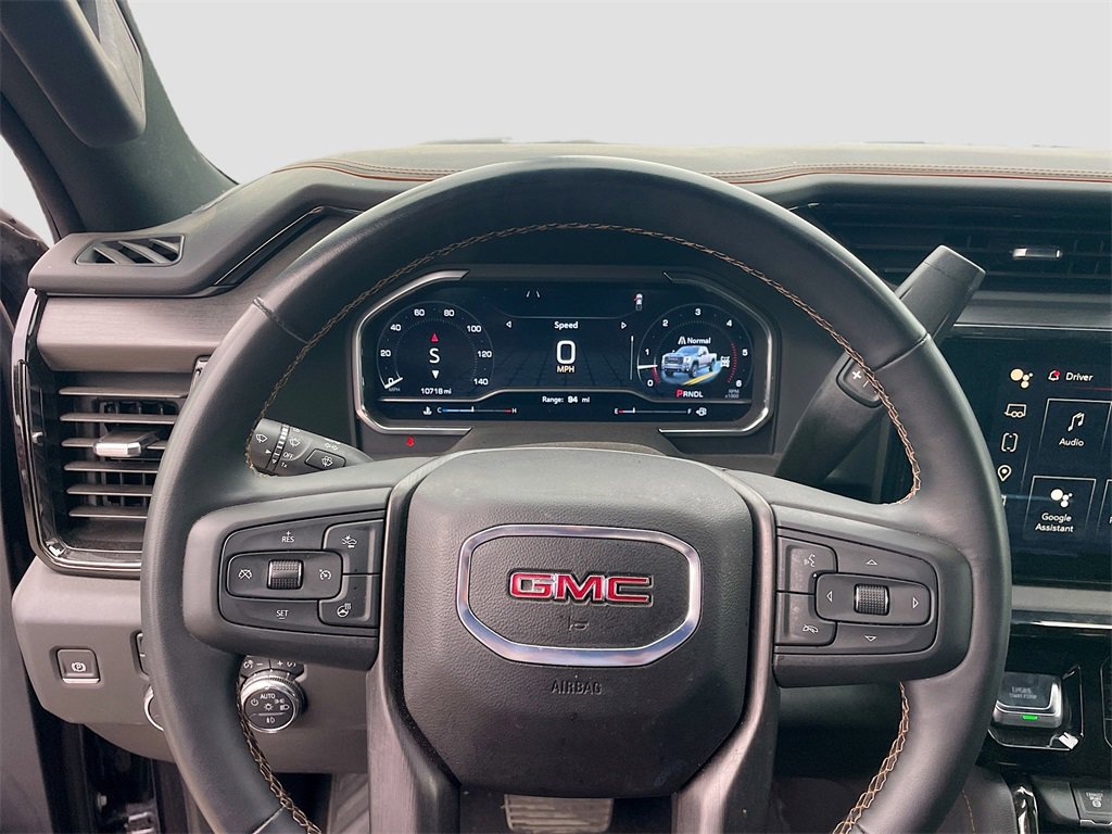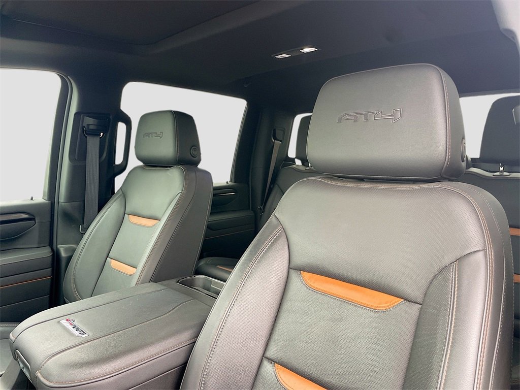10-Speed Automatic, 4WD, Jet Black With Kalahari Accents Leather, 10-Way Power Driver Seat Adjuster w/Lumbar, 10-Way Power Passenger Seat Adjuster w/Lumbar, 120-Volt Bed Mounted Power Outlet, 120-Volt Instrument Panel Power Outlet, 2 Charge-Only Rear USB Ports, 2 Charge/Data USB Ports Inside Center Console, 2 USB Ports, 2-Speed Active Transfer Case, 220-Amp Alternator, 4-Wheel Disc Brakes, 7 Speakers, ABS brakes, Air Conditioning, Alloy wheels, AM/FM radio: SiriusXM with 360L, Apple CarPlay/Android Auto, AT4 Preferred Package, AT4 Premium Plus Package, Auto High-beam Headlights, Auto-dimming door mirrors, Auto-dimming Rear-View mirror, Automatic Emergency Braking, Automatic temperature control, Bed View Camera w/2 Trailer Camera Provisions, Bose Premium 7-Speaker Sound System, Brake assist, Buckle to Drive, Bumpers: body-color, Compass, Deep-Tinted Glass, Delay-off headlights, Driver door bin, Driver Memory, Driver vanity mirror, Dual front impact airbags, Dual front side impact airbags, Electric Rear-Window Defogger, Electronic Stability Control, Emergency communication system: OnStar, Engine Block Heater, Exhaust Brake, Floor-Mounted Center Console, Following Distance Indicator, Forward Collision Alert, Front anti-roll bar, Front Bucket Seats, Front Center Armrest, Front dual zone A/C, Front fog lights, Front License Plate Kit, Front Pedestrian Braking, Front Prem Floor Liners w/Removable Carpet Insert, Front Rain-Sensing Wipers, Front reading lights, Front wheel independent suspension, Fully automatic headlights, Gloss Black Header Grille & Grille Insert Bars, GMC MultiPro Tailgate Step Lights (LPO), Gooseneck/5th Wheel Prep Package, HD Surround Vision, Heated 2nd Row Outboard Seats, Heated door mirrors, Heated Driver & Front Outboard Passenger Seats, Heated front seats, Heated rear seats, Heated steering wheel, Heavy-Duty 80 Amp Battery, Hill Descent Control, Hitch Guidance w/Hitch View, Illuminated entry, In-Vehicle Trailering System App, Inside Rearview Auto-Dimming Rear Camera Mirror, IntelliBeam Automatic High Beam On/Off, Keyless Open & Start, Lane Departure Warning System, LED Cargo Area Lighting, LED Smoked Amber Roof Marker Lamps, Low tire pressure warning, Manual Tilt-Wheel/Telescoping Steering Column, Memory seat, Multicolor 15 Diagonal Head-Up Display, Occupant sensing airbag, Off-Road High Clearance Step (LPO), Off-Road Suspension, OnStar Services Capable, Outside temperature display, Overhead airbag, Overhead console, Panic alarm, Passenger door bin, Passenger vanity mirror, Perforated Leather-Appointed Front Seat Trim, Pickup Box, Power door mirrors, Power driver seat, Power Front Passenger Windows w/Express Up/Down, Power passenger seat, Power Sliding Rear Window w/Defogger, Power steering, Power Sunroof, Power windows, Power-Retractable Black Assist Steps, Preferred Equipment Group 4SB, Push Button Start, Radio: AM/FM w/Premium GMC Infotainment System, Rain sensing wipers, Rear Cross Traffic Alert, Rear Prem Floor Liners w/Removable Carpet Insert, Rear reading lights, Rear seat center armrest, Rear step bumper, Rear Wheelhouse Liners, Rear window defroster, Remote keyless entry, Remote Vehicle Starter System, Safety Alert Seat, Security system, SiriusXM w/360L Trial Subscription, Speed control, Speed-sensing steering, Split folding rear seat, Spray-On Pickup Bedliner w/GMC Logo, Steering Wheel Audio Controls, Steering wheel mounted audio controls, Tachometer, Technology Package, Telescoping steering wheel, Tilt steering wheel, Traction control, Trailer Cam Provisions & Trailer Viewing Software, Trailer Side Blind Zone Alert, Trip computer, Turn sign