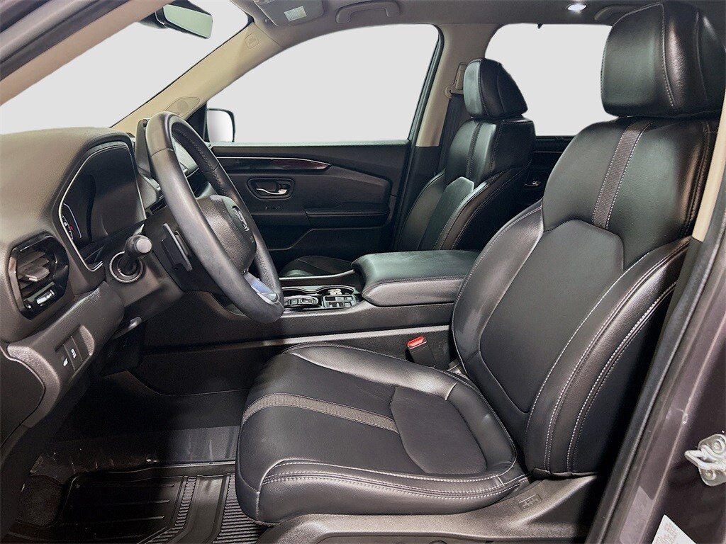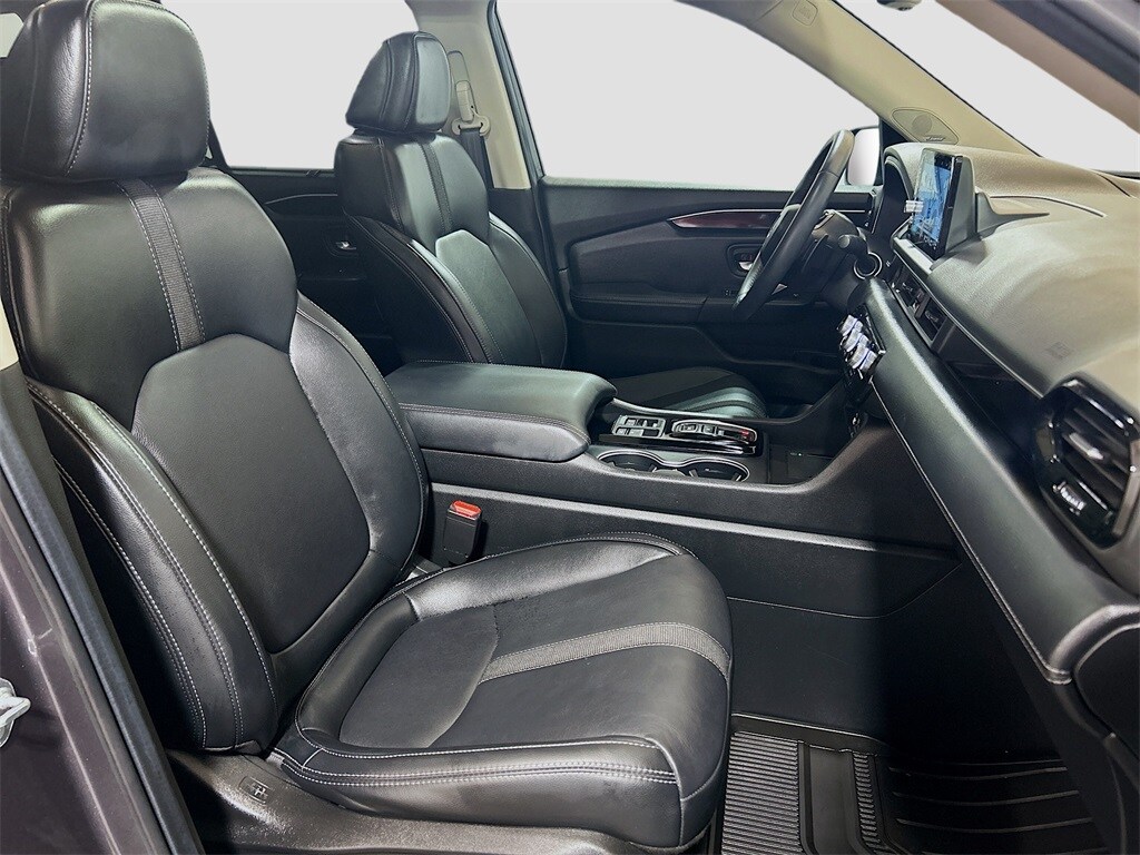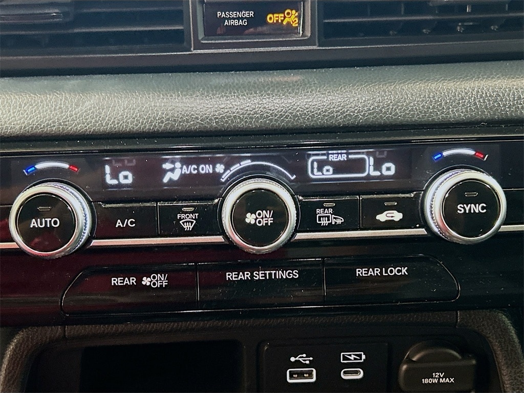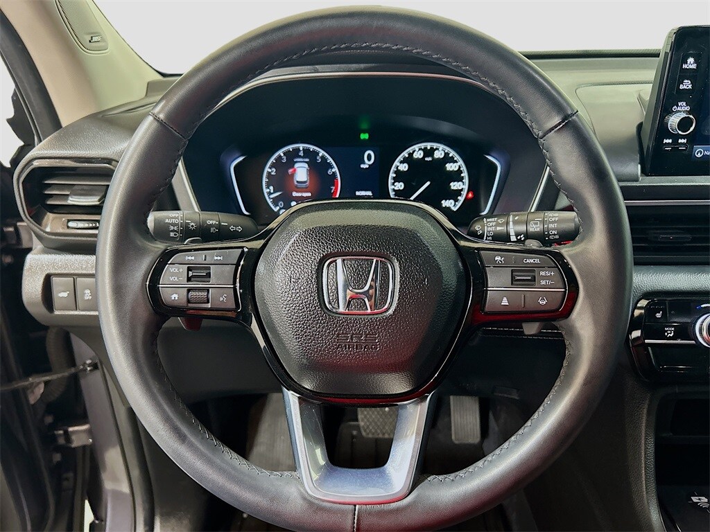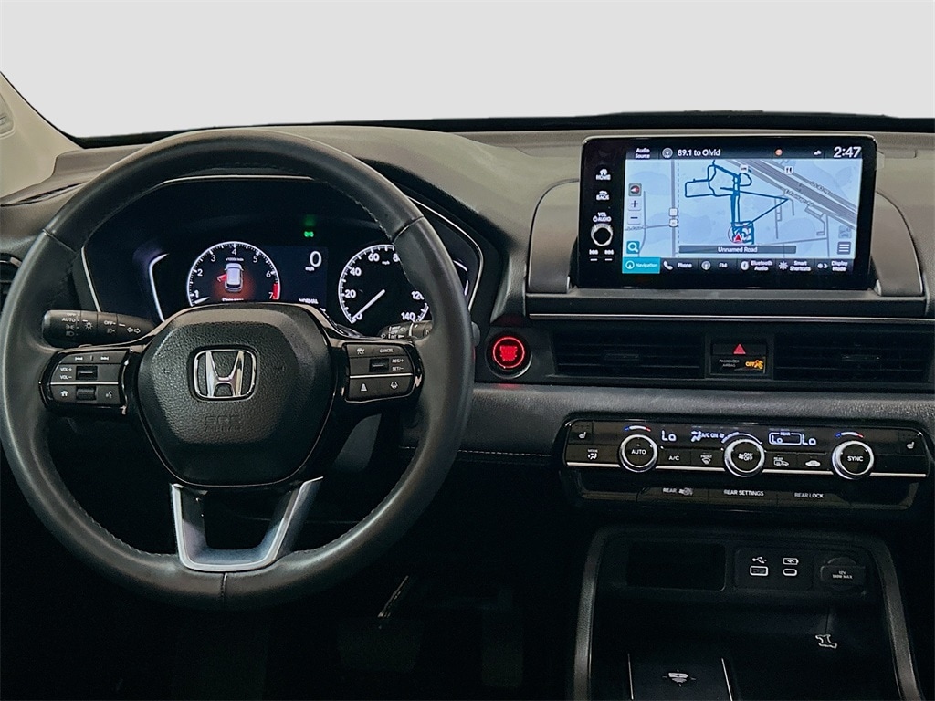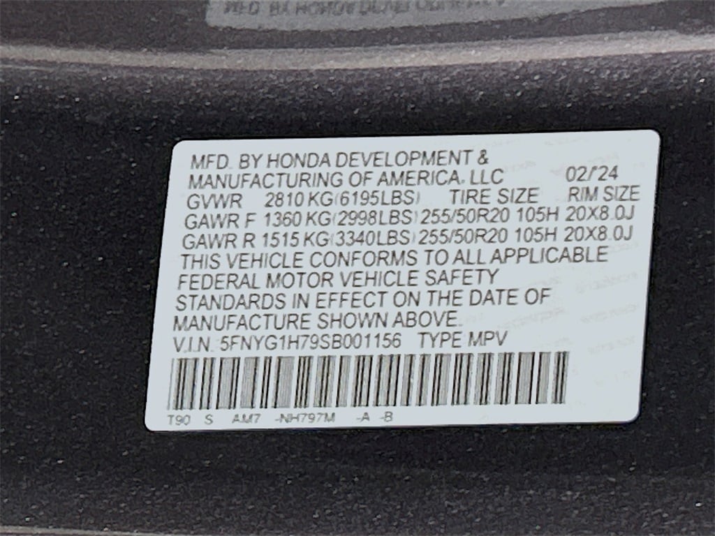 AWD, 12 Speakers, 3rd row seats: split-bench, 4-Wheel Disc Brakes, 4.167 Axle Ratio, ABS brakes, Adaptive Cruise Control: Adaptive Cruise Control (ACC) with Low-Speed Follow, Air Conditioning, Alloy wheels, AM/FM radio: SiriusXM, Apple CarPlay/Android Auto, Auto High-beam Headlights, Auto-dimming Rear-View mirror, Automatic temperature control, Blind Spot Information (BSI) System warning, Bose Premium Sound System, Brake assist, Bumpers: body-color, Compass, Delay-off headlights, Driver door bin, Driver vanity mirror, Dual front impact airbags, Dual front side impact airbags, Electronic Stability Control, Emergency communication system: HondaLink, Exterior Parking Camera Rear, Four wheel independent suspension, Front anti-roll bar, Front Bucket Seats, Front Center Armrest, Front dual zone A/C, Front fog lights, Front reading lights, Fully automatic headlights, Garage door transmitter: HomeLink, Heated door mirrors, Heated Front Bucket Seats, Heated front seats, Honda Satellite-Linked Navigation System, HondaLink Subscription Services, Illuminated entry, Knee airbag, Lane departure: Lane Keeping Assist System (LKAS) active, Leather Seat Trim, Low tire pressure warning, Memory seat, Navigation system: Honda Satellite-Linked Navigation System, Occupant sensing airbag, Outside temperature display, Overhead airbag, Overhead console, Panic alarm, Passenger door bin, Passenger vanity mirror, Power door mirrors, Power driver seat, Power Liftgate, Power moonroof, Power passenger seat, Power steering, Power windows, Radio data system, Rear air conditioning, Rear anti-roll bar, Rear reading lights, Rear seat center armrest, Rear window defroster, Rear window wiper, Reclining 3rd row seat, Remote keyless entry, Security system, SiriusXM, Speed control, Speed-sensing steering, Speed-Sensitive Wipers, Split folding rear seat, Spoiler, Steering wheel mounted audio controls, Tachometer, Telescoping steering wheel, Tilt steering wheel, Traction control, Trip computer, Turn signal indicator mirrors, Variably intermittent wipers, AWD.