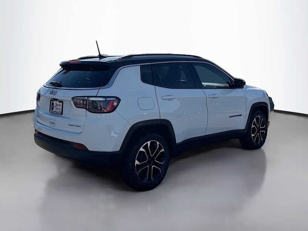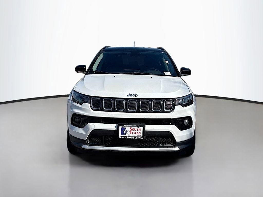 Clean CARFAX. Bright White Clearcoat 2022 Jeep Compass Limited 4WD 9-Speed 948TE Automatic 2.4L I4WE ARE OPEN FOR ALL YOUR SALES AND SERVICE NEEDS! COMPLETE ONLINE BUYING EXPERIENCE AVAILABLE!CALL 956-661-5000 TO SCHEDULE YOUR CONTACT FREE TEST DRIVE TODAY!4WD, 10.1 Touchscreen Display, 3.73 Axle Ratio, 4-Wheel Disc Brakes, 6 Speakers, ABS brakes, Air Conditioning, Alloy wheels, AM/FM radio: SiriusXM, Anti-whiplash front head restraints, Auto High-beam Headlights, Auto-dimming Rear-View mirror, Automatic temperature control, Brake assist, Bumpers: body-color, Compass, Delay-off headlights, Disassociated Touchscreen Display, Driver door bin, Driver vanity mirror, Dual front impact airbags, Dual front side impact airbags, Electronic Stability Control, Emergency communication system: SiriusXM Guardian, Four wheel independent suspension, Front anti-roll bar, Front Bucket Seats, Front Center Armrest w/Storage, Front dual zone A/C, Front fog lights, Front License Plate Bracket, Front reading lights, Fully automatic headlights, Global Telematics Box Module (TBM), Gloss Black Exterior Mirrors, Heated door mirrors, Heated front seats, Heated steering wheel, Illuminated entry, Knee airbag, Leather Shift Knob, Leather Trimmed Bucket Seats, Low tire pressure warning, Occupant sensing airbag, Outside temperature display, Overhead airbag, Overhead console, Panic alarm, ParkView Rear Back-Up Camera, Passenger door bin, Passenger vanity mirror, Power door mirrors, Power driver seat, Power steering, Power windows, Quick Order Package 2GG, Radio: Uconnect 5 w/10.1 Display, Rain sensing wipers, Rear anti-roll bar, Rear seat center armrest, Rear window defroster, Rear window wiper, Remote keyless entry, Roof rack: rails only, Security system, Speed control, Split folding rear seat, Spoiler, Steering wheel mounted audio controls, Tachometer, Telescoping steering wheel, Tilt steering wheel, Traction control, Trip computer, Turn signal indicator mirrors, Variably intermittent wipers, Wheels: 18 x 7 Painted Diamond Cut Aluminum, 4WD.Odometer is 6701 miles below market average! 22/30 City/Highway MPG