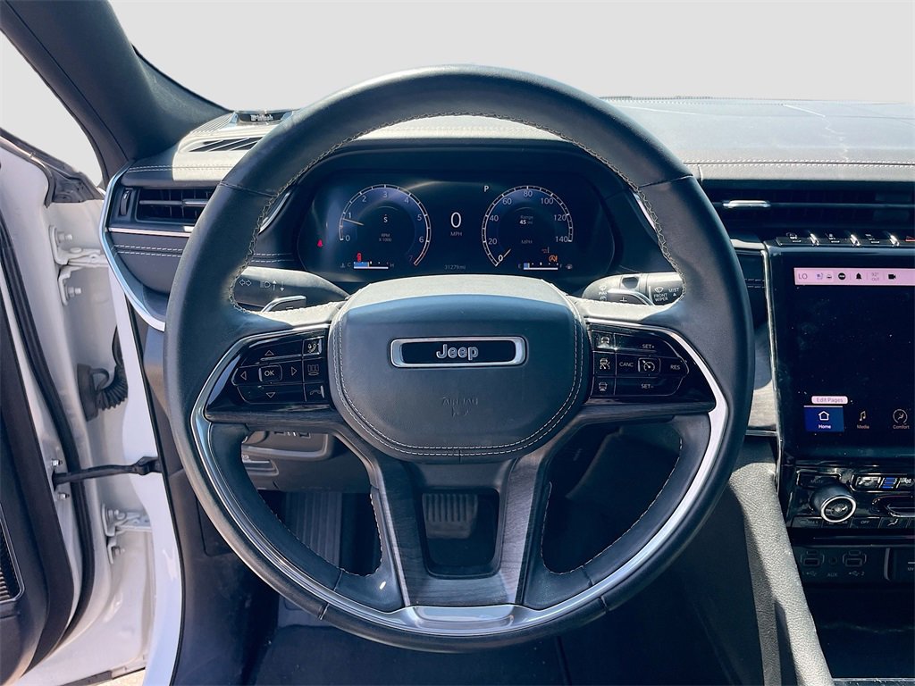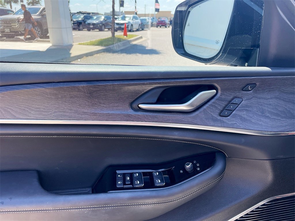 10 Speakers, 10.1 Touchscreen Display, 19 Speakers High Performance Audio, 2nd Row Manual Window Shades, 3.45 Rear Axle Ratio, 3rd row seats: split-bench, 4-Wheel Disc Brakes, 4G LTE Wi-Fi Hot Spot, 950 Watt Amplifier, ABS brakes, Active Noise Control System, Adaptive suspension, Air Conditioning, All Radio Equipped Vehicles, Alloy wheels, AM/FM radio: SiriusXM with 360L, Anti-whiplash front head restraints, Apple CarPlay, ATC w/4 Zone Temp Control, Audio memory, Auto High-beam Headlights, Auto-dimming door mirrors, Auto-dimming Rear-View mirror, Auto-leveling suspension, Automatic temperature control, Brake assist, Bumpers: body-color, Compass, Connected Travel & Traffic Services, Connectivity - US/Canada, Delay-off headlights, Disassociated Touchscreen Display, Driver door bin, Driver Power Seat Back Massage, Driver vanity mirror, Dual front impact airbags, Dual front side impact airbags, Electronic Stability Control, Emergency communication system, For Details, Visit DriveUconnect.com, For More Info, Call 800-643-2112, Four wheel independent suspension, Front anti-roll bar, Front Bucket Seats, Front Center Armrest w/Storage, Front dual zone A/C, Front fog lights, Front Passenger Power Seat Back Massage, Front reading lights, Fully automatic headlights, Garage door transmitter, Global Telematics Box Module (TBM), Google Android Auto, GPS Antenna Input, GPS Navigation, HD Radio, Heated door mirrors, Heated front seats, Heated rear seats, Heated steering wheel, Illuminated entry, Integrated Center Stack Radio, Integrated Voice Command w/Bluetooth, Knee airbag, Leather steering wheel, Low tire pressure warning, Luxury Tech Group IV, Memory seat, Nappa Leather Seats, Nappa Leather Seats (TL), Navigation System, Normal Duty Suspension, Occupant sensing airbag, Outside temperature display, Overhead airbag, Overhead console, Panic alarm, Passenger door bin, Passenger Seat Memory, Passenger vanity mirror, Power Adjust 12-Way Driver Seat, Power Adjust 12-Way Front Passenger Seat, Power door mirrors, Power driver seat, Power Fold Seatbacks, Power Liftgate, Power moonroof, Power passenger seat, Power steering, Power windows, Quick Order Package 22N, Radio data system, Radio: Uconnect 5 Nav w/10.1 Display, Radio: Uconnect 5 Nav w/8.4 Display, Rain sensing wipers, Rear air conditioning, Rear anti-roll bar, Rear reading lights, Rear window defroster, Rear window wiper, Rearview Autodim Digital Display Mirror, Reclining 3rd row seat, Remote keyless entry, Security system, SiriusXM Radio Service, SiriusXM Satellite Radio, SiriusXM w/360L, Speed control, Speed-Sensitive Wipers, Split folding rear seat, Spoiler, Steering wheel memory, Steering wheel mounted audio controls, Tachometer, Telescoping steering wheel, Tilt steering wheel, Traction control, Trip computer, Turn signal indicator mirrors, USB Host Flip, Variably intermittent wipers, Ventilated front seats, Voltmeter, Wheels: 20 x 8.5 Machined Face Aluminum, Wireless Charging Pad.