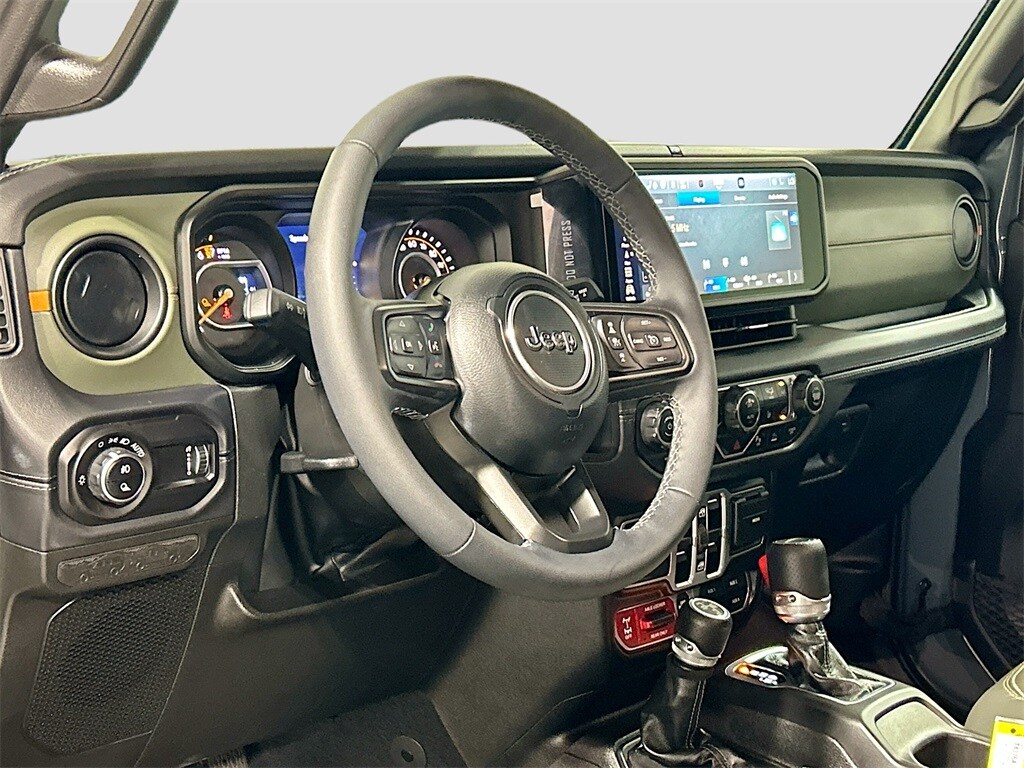 12.3" Touchscreen Display, 4-Wheel Disc Brakes, 4.10 Rear Axle Ratio, 4G LTE Wi-Fi Hot Spot, 8 Speakers, 97 MPH Vehicle Max Speed Calibration, ABS brakes, Air Conditioning, Alexa Built-In, Alloy wheels, Alpine Premium Audio System, AM/FM radio: SiriusXM, Apple CarPlay, Apple CarPlay/Android Auto, Auto High Beam Headlamp Control, Auto-Dimming Rear-View Mirror, Automatic temperature control, Blind Spot & Cross Path Detection, Bluetooth Wireless Speaker, Body Color 3-Piece Hard Top, Body Color Rubicon Highline Flare, Brake assist, Compass, Connected Travel & Traffic Services, Connectivity - US/Canada, Delay-off headlights, Driver door bin, Driver vanity mirror, Dual front impact airbags, Dual front side impact airbags, Electronic Stability Control, Emergency communication system: Jeep Connect, Freedom Panel Storage Bag, Front anti-roll bar, Front Bucket Seats, Front Center Armrest w/Storage, Front dual zone A/C, Front fog lights, Front License Plate Bracket, Front reading lights, Full Length Floor Console Premium Armrest, Fully automatic headlights, Google Android Auto, GPS Navigation, Heated door mirrors, Heated Front Seats, Heated Steering Wheel, Heavy Duty Suspension w/Gas Shocks, Illuminated entry, Integrated Off-Road Camera, Integrated roll-over protection, Integrated Voice Command w/Bluetooth, Leather Trimmed Bucket Seats, Leather Wrapped Park Brake Handle, Leather Wrapped Shift Knob, Low tire pressure warning, MOPAR Hardtop Headliner, No Soft Top, Occupant sensing airbag, Outside temperature display, Overhead airbag, Panic alarm, ParkSense Rear Park Assist System, Passenger door bin, Passenger vanity mirror, Power 4-Way Driver Lumbar Adjust, Power 4-Way Passenger Lumbar Adjust, Power Adjust 8-Way Driver Seat, Power Adjust 8-Way Front Passenger Seat, Power door mirrors, Power steering, Power windows, Premium Cloth Seats w/Sport Bolsters, Premium Door Trim Panel, Quick Order Package 24A Mojave X, Radio data system, Radio: Uconnect 5 Nav w/12.3" Display, Radio: Uconnect 5 w/12.3" Display, Rear anti-roll bar, Rear Armrest w/Cupholder Seat, Rear reading lights, Rear Sliding Window, Rear Window Defroster, Remote keyless entry, Security system, SiriusXM Radio Service, SiriusXM w/360L, Speed control, Split folding rear seat, Steel Front Bumper, Steel Rear Bumper, Steering wheel mounted audio controls, Tachometer, Telescoping steering wheel, Tilt steering wheel, Traction control, Trip computer, Universal Garage Door Opener, USB Host Flip, Variably intermittent wipers, Voltmeter, Wheels: 17" x 7.5" Dark Gray Painted.