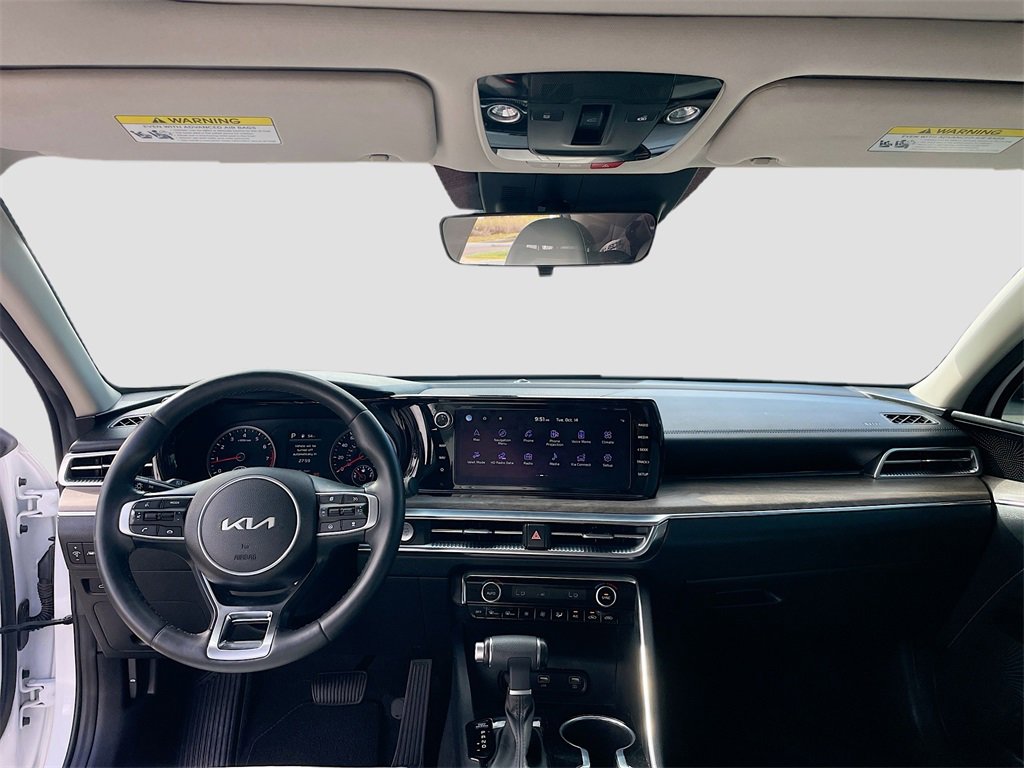 Glacial White Pearl 2024 Kia K5 EX FWD 8-Speed Automatic 1.6L I4 DGI Turbocharged DOHC 16V LEV3-ULEV70 180hpWE ARE OPEN FOR ALL YOUR SALES AND SERVICE NEEDS! COMPLETE ONLINE BUYING EXPERIENCE AVAILABLE!CALL 956-661-5000 TO SCHEDULE YOUR CONTACT FREE TEST DRIVE TODAY!4-Wheel Disc Brakes, 6 Speakers, ABS brakes, Active Sound Design, Air Conditioning, Alloy wheels, AM/FM radio: SiriusXM, Apple CarPlay & Android Auto, Auto High-beam Headlights, Auto Up/Down Rear Windows, Automatic temperature control, Bose Premium Audio, Brake assist, Bumpers: body-color, Cargo Net, Carpeted Floor Mats, Delay-off headlights, Driver door bin, Driver vanity mirror, Dual front impact airbags, Dual front side impact airbags, Electronic Stability Control, Emergency communication system, EX Ash Blue Interior Color Package, EX Premium Package, Forward Collision Avoidance-Assist, Four wheel independent suspension, Front anti-roll bar, Front Bucket Seats, Front Center Armrest, Front dual zone A/C, Front reading lights, Fully automatic headlights, Heated & Ventilated Front Bucket Seats, Heated door mirrors, Heated front seats, Heated Steering Wheel, Highway Driving Assist, Illuminated entry, Knee airbag, Leather steering wheel, LED Rear Combination Lamps, Low tire pressure warning, Memory Driver's Seat & Outside Mirrors, Navigation System, Navigation-Based Smart Cruise Control - Curve, Occupant sensing airbag, Outside temperature display, Overhead airbag, Overhead console, Panic alarm, Parking Collision Avoidance-Assist - Reverse, Parking Distance Warning - Forward & Reverse, Passenger door bin, Passenger vanity mirror, Power Child Lock, Power door mirrors, Power driver seat, Power Folding Outside Mirrors w/LED Turn Signals, Power Front Passenger Seat, Power moonroof, Power steering, Power windows, Radio data system, Radio: AM/FM/MP3 Audio System, Rear anti-roll bar, Rear reading lights, Rear seat center armrest, Rear side impact airbag, Rear window defroster, Remote keyless entry, Safe Exit Assist w/Lock, Security system, Smart Cruise Control w/Stop & Go, Smart Key w/ Push Button and Remote Start, Speed control, Speed-sensing steering, Split folding rear seat, Steering wheel mounted audio controls, Surround View Monitor, SynTex Seat Trim, Tachometer, Telescoping steering wheel, Tilt steering wheel, Traction control, Trip computer, Variably intermittent wipers, Ventilated front seats, Wheels: 18 Gray Machined Finish Alloy.27/37 City/Highway MPG