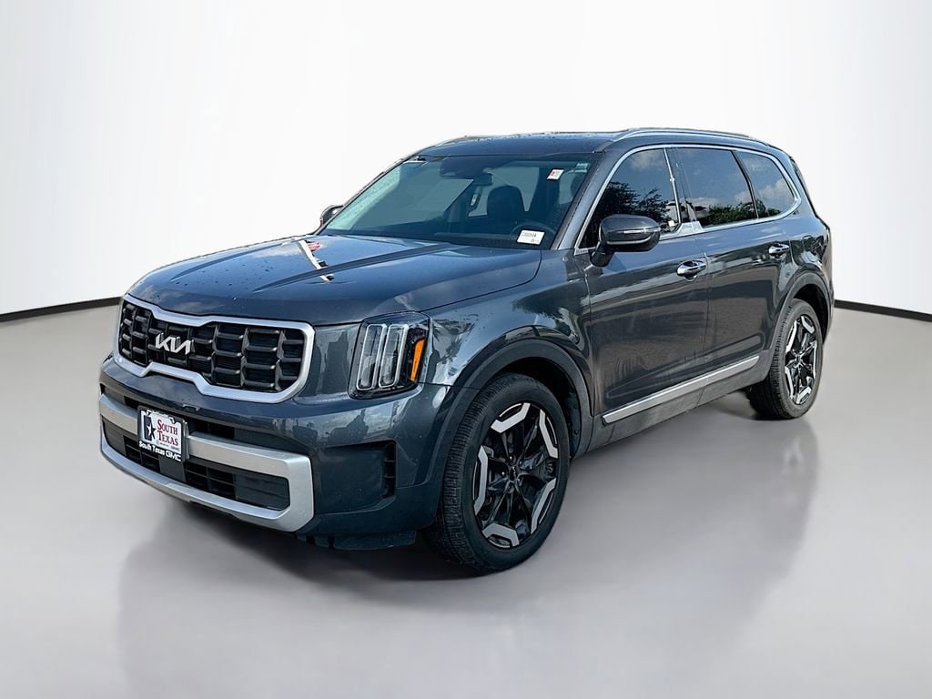 CARFAX One-Owner. Gravity Gray 2024 Kia Telluride S AWD 8-Speed Automatic 3.8L V6 DOHCWE ARE OPEN FOR ALL YOUR SALES AND SERVICE NEEDS! COMPLETE ONLINE BUYING EXPERIENCE AVAILABLE!CALL 956-661-5000 TO SCHEDULE YOUR CONTACT FREE TEST DRIVE TODAY!3.648 Axle Ratio, 3rd row seats: split-bench, 4-Wheel Disc Brakes, 6 Speakers, ABS brakes, Air Conditioning, Alloy wheels, AM/FM radio: SiriusXM, Apple CarPlay & Android Auto, Auto High-beam Headlights, Automatic temperature control, Brake assist, Bumpers: body-color, Carpet Floor Mats, Delay-off headlights, Driver door bin, Driver vanity mirror, Dual front impact airbags, Dual front side impact airbags, Electronic Stability Control, Emergency communication system: 911 Connect, Exterior Parking Camera Rear, Four wheel independent suspension, Front anti-roll bar, Front Bucket Seats, Front Center Armrest, Front dual zone A/C, Front reading lights, Fully automatic headlights, Heated door mirrors, Heated Front Bucket Seats, Heated front seats, Illuminated entry, Knee airbag, Leather Shift Knob, Leather steering wheel, Low tire pressure warning, Navigation System, Occupant sensing airbag, Outside temperature display, Overhead airbag, Overhead console, Panic alarm, Passenger door bin, Passenger vanity mirror, Power door mirrors, Power driver seat, Power steering, Power Sunroof w/Sunshade, Power windows, Radio data system, Radio: AM/FM Display Audio System, Rear air conditioning, Rear anti-roll bar, Rear audio controls, Rear reading lights, Rear side impact airbag, Rear window defroster, Rear window wiper, Reclining 3rd row seat, Remote keyless entry, Roof rack: rails only, S Sunroof Package, Security system, Smart Key w/ Push Button and Remote Start, Speed control, Speed-sensing steering, Split folding rear seat, Spoiler, Steering wheel mounted audio controls, SynTex Synthetic Leather Seat Trim, Tachometer, Telescoping steering wheel, Tilt steering wheel, Traction control, Trip computer, Turn signal indicator mirrors, Variably intermittent wipers, Wheels: 20 x 7.5 Black Finish. Recent Arrival!Odometer is 10354 miles below market average!