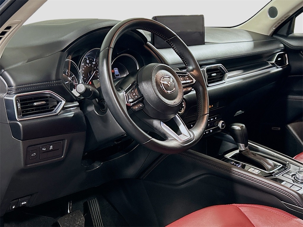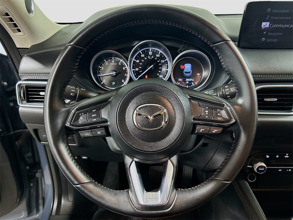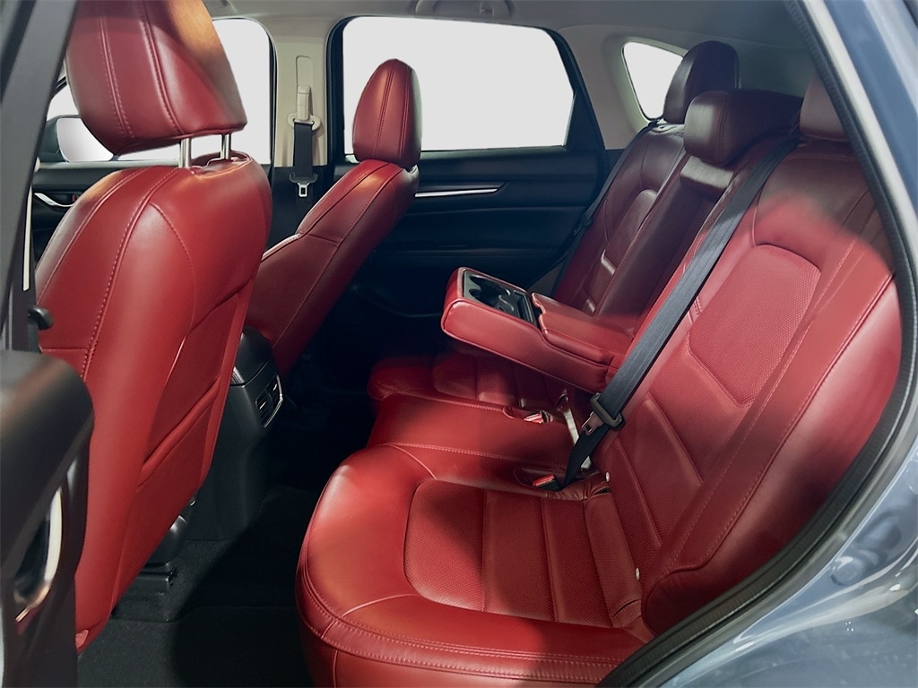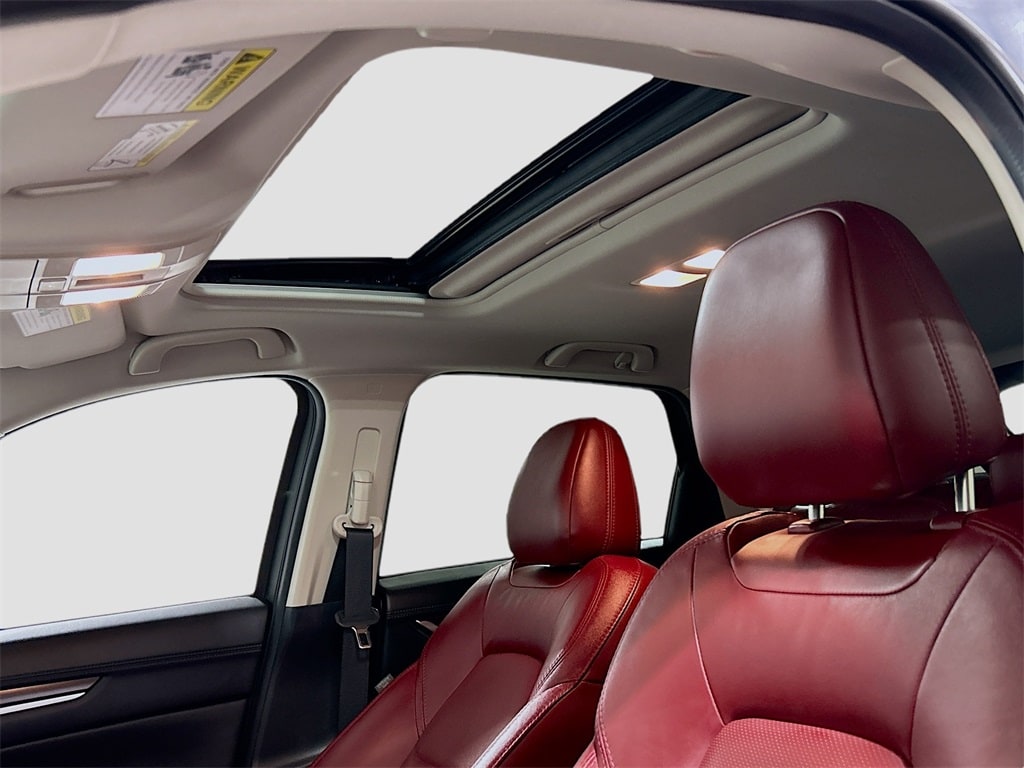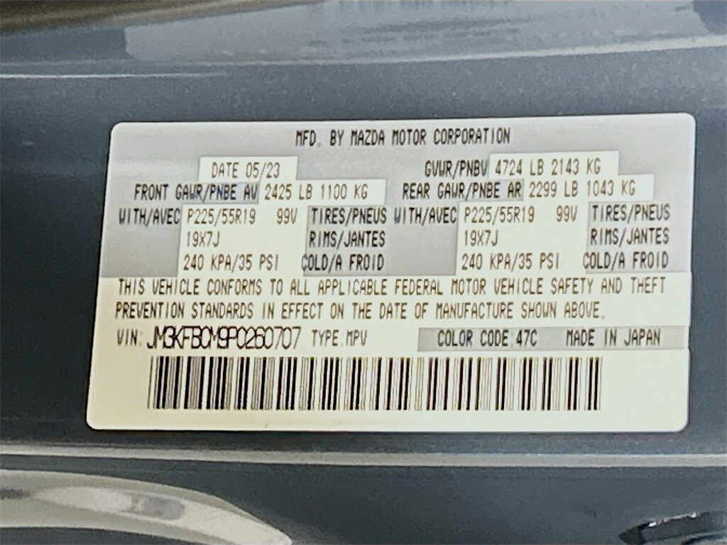 10 Speakers, 4-Wheel Disc Brakes, 4.624 Axle Ratio, ABS brakes, Air Conditioning, All-Weather Floor Mats, Alloy wheels, AM/FM radio, AppLink/Apple CarPlay and Android Auto, Auto High-beam Headlights, Auto-dimming Rear-View mirror, Automatic temperature control, Black Lug Nuts & Black Wheel Locks, Brake assist, Bumpers: body-color, Cargo Tray, Delay-off headlights, Driver door bin, Driver vanity mirror, Dual front impact airbags, Dual front side impact airbags, E911 Automatic Emergency Notification, Electronic Stability Control, Emergency communication system: MAZDA CONNECT, Exterior Parking Camera Rear, Four wheel independent suspension, Front anti-roll bar, Front Bucket Seats, Front Center Armrest w/Storage, Front dual zone A/C, Front reading lights, Fully automatic headlights, Garage door transmitter: HomeLink, Heated Front Bucket Seats, Heated front seats, Illuminated entry, Infotainment System Voice Command, Leather Seat Trim, Leather Shift Knob, Low tire pressure warning, Memory seat, Multifunction Commander Control, Occupant sensing airbag, Outside temperature display, Overhead airbag, Overhead console, Pandora, Panic alarm, Passenger door bin, Passenger vanity mirror, Power door mirrors, Power driver seat, Power Liftgate, Power moonroof, Power passenger seat, Power steering, Power windows, Radio Broadcast Data System Program Information, Radio data system, Radio: AM/FM/HD Audio System, Rain sensing wipers, Rear anti-roll bar, Rear Bumper Guard, Rear reading lights, Rear seat center armrest, Rear window defroster, Rear window wiper, Remote keyless entry, SMS Text Msg Audio Delivery & Reply, Speed control, Speed-sensing steering, Split folding rear seat, Spoiler, Steering wheel mounted audio controls, Tachometer, Telescoping steering wheel, Tilt steering wheel, Traction control, Trip computer, Turn signal indicator mirrors, Variably intermittent wipers, Wheels: 19" x 7J Aluminum Alloy.