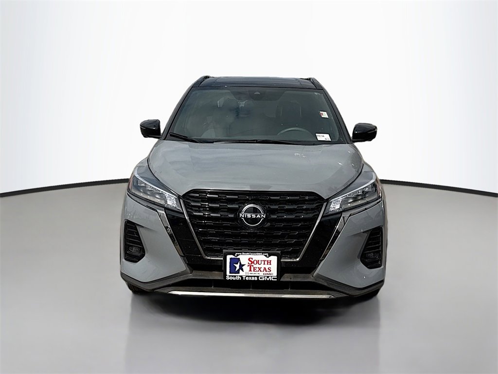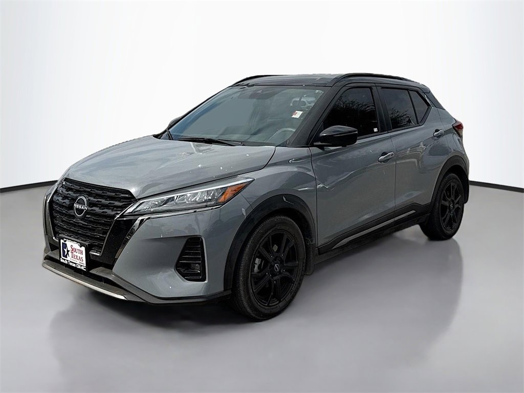 Clean CARFAX. CARFAX One-Owner. Gray/Super Black 2023 Nissan Kicks SR FWD CVT with Xtronic 1.6L 4-Cylinder DOHC 16V