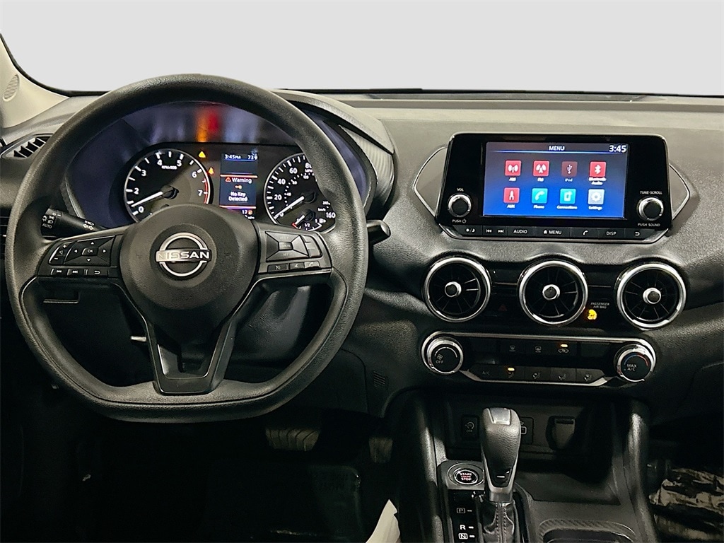 CVT with Xtronic, Charcoal Cloth, 16" Steel Wheels w/Full Wheel Covers, 4 Speakers, ABS brakes, Air Conditioning, AM/FM radio, Auto High-beam Headlights, Blind Spot Warning, Body Colored Splash Guards (4-Piece), Brake assist, Bumpers: body-color, Carpeted Floor Mats w/Trunk Mat, Clear Rear Bumper Protector, Cloth Seat Trim, Delay-off headlights, Driver door bin, Driver vanity mirror, Dual front impact airbags, Dual front side impact airbags, Electronic Stability Control, Four wheel independent suspension, Front anti-roll bar, Front Bucket Seats, Front Center Armrest, Front reading lights, Fully automatic headlights, Illuminated entry, Knee airbag, Low tire pressure warning, NissanConnect featuring Apple CarPlay and Android Auto, Occupant sensing airbag, Outside temperature display, Overhead airbag, Overhead console, Panic alarm, Passenger door bin, Passenger vanity mirror, Power door mirrors, Power steering, Power windows, Radio data system, Radio: AM/FM w/RDS/MP3/Aux-In, Rear anti-roll bar, Rear Parking Sensors, Rear side impact airbag, Rear window defroster, Remote keyless entry, Speed control, Speed-sensing steering, Split folding rear seat, Steering wheel mounted audio controls, Tachometer, Telescoping steering wheel, Tilt steering wheel, Traction control, Trip computer, Variably intermittent wipers, CVT with Xtronic, Charcoal Cloth.
