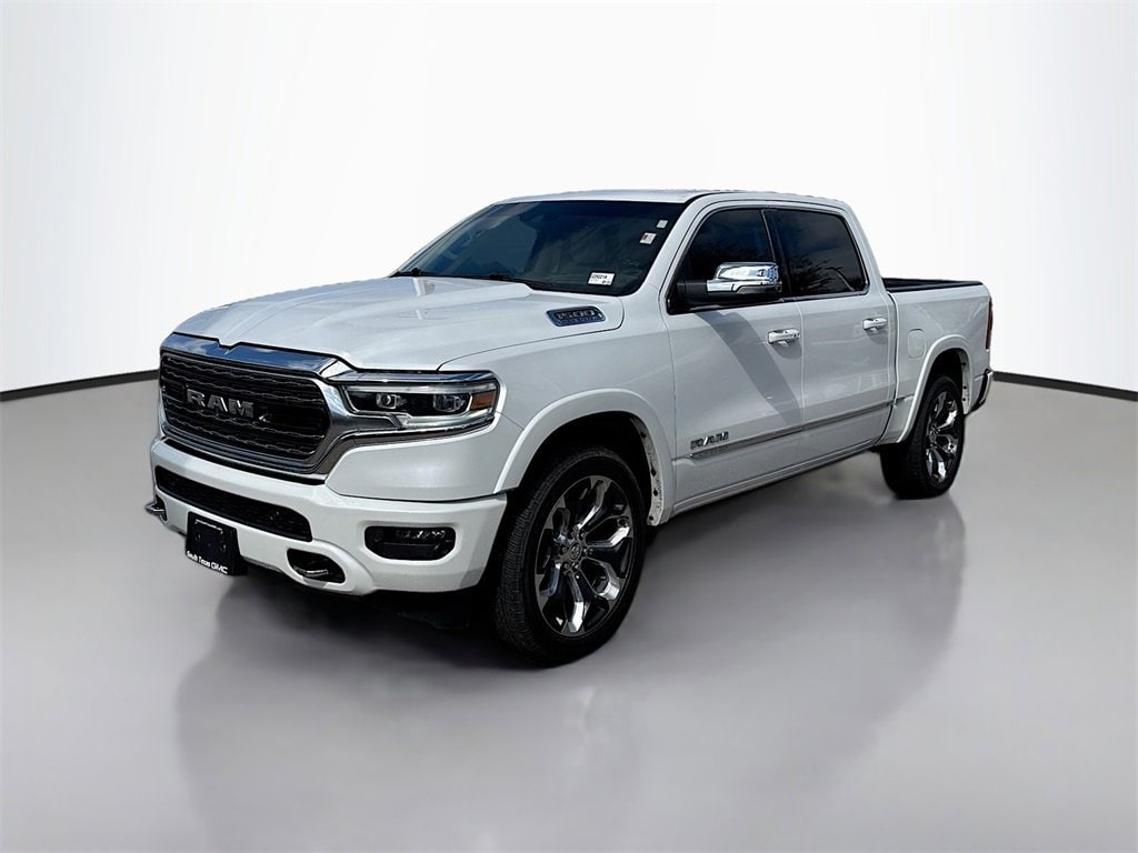 10 Speakers, 33 Gallon Fuel Tank, 4 Way Front Headrests, 4-Wheel Disc Brakes, 48V Belt Starter Generator, ABS brakes, Active Noise Control System, Adaptive Cruise Control w/Stop & Go, Adjustable pedals, Air Conditioning, Alloy wheels, AM/FM radio: SiriusXM with 360L, Anti-Spin Differential Rear Axle, Apple CarPlay/Android Auto, Audio memory, Auto High-beam Headlights, Auto-dimming door mirrors, Auto-Dimming Exterior Driver Mirror, Auto-dimming Rear-View mirror, Auto-leveling suspension, Automatic temperature control, Body Color Bumper Group, Body Color Front Bumper, Body Color Rear Bumper w/Step Pads, Bodyside moldings, Brake assist, Bucket Seats, Bumpers: chrome, Chrome Exterior Mirrors, Compass, Convex Wide-Angle Exterior Mirror Insert, Delay-off headlights, Digital Rearview Mirror, Driver door bin, Driver Seat Memory, Driver vanity mirror, Dual front impact airbags, Dual front side impact airbags, Dual Rear Exhaust w/Bright Tips, Electronic Stability Control, Elite Package (DISC), Exterior Mirrors Courtesy Lamps, Exterior Mirrors w/Heating Element, Exterior Mirrors w/Memory, Exterior Mirrors w/Supplemental Signals, Front anti-roll bar, Front Bucket Seats, Front Center Armrest w/Storage, Front dual zone A/C, Front fog lights, Front License Plate Bracket, Front reading lights, Front Seat Back Map Pockets, Front wheel independent suspension, Full Length Premium Floor Console, Fully automatic headlights, Garage door transmitter, Genuine wood console insert, Genuine wood dashboard insert, Genuine wood door panel insert, harman/kardon 19 Speaker Premium Sound, Heads-Up Display, Heated door mirrors, Heated Front Seats, Heated front seats, Heated rear seats, Heated Second Row Seats, Heated Steering Wheel, Heated steering wheel, Heavy-Duty Engine Cooling, HEMI Badge, Illuminated entry, Instrument Cluster Theme 8, Lane Keep Assist, Leather steering wheel, LED CHMSL Lamp, Limited Level 1 Equipment Group, Low tire pressure warning, Memory seat, MOPAR 4 Adjustable Cargo Tie-Down Hooks, MOPAR Bright Pedal Kit, MOPAR Deployable Bed Step Center Mount, MOPAR Spray In Bedliner, Multi-Function Tailgate, Navigation System, Occupant sensing airbag, Outside temperature display, Overhead airbag, Overhead console, Panic alarm, Parallel & Perp Park Assist w/Stop, ParkSense Front/Rear Park Assist w/Stop, ParkView Rear Back-Up Camera, Passenger door bin, Passenger vanity mirror, Passive Tuned Mass Damper, Pedal memory, Pedestrian Emergency Braking, Pick-Up Box Lighting, Power 4-Way Driver Lumbar Adjust, Power 4-Way Passenger Lumbar Adjust, Power 8-Way Driver & Passenger Seats, Power door mirrors, Power driver seat, Power passenger seat, Power Running Boards, Power steering, Power windows, Power-Folding Mirrors, Premium Leather Trimmed Bucket Seats, Premium Quilted Leather Bucket Seats, Quick Order Package 27M Limited, Radio data system, Radio: Uconnect 5 Nav w/12.0 Display, Rain sensing wipers, Rear 60/40 Folding Split Recline Seat, Rear anti-roll bar, Rear seat center armrest, Rear step bumper, Rear window defroster, Remote keyless entry, Rotary Shifter-Jeweled, Security system, Speed control, Split folding rear seat, Steering wheel mounted audio controls, Suede Headliner, Surround View Camera System, Tachometer, Tailgate Ajar Warning Lamp, Telescoping steering wheel, Tilt steering wheel, Traction control, Trailer Brake Control, Trip computer, Turn signal indicator mirrors, Variably intermittent wipers, Ventilated Front Seats, Ventilated front seats, Ventilated Rear Seats, Ventilated rear seats, Voltmeter, Wheels: 20 x 9 Aluminum Painted/Polished, Wheels: 22 x 9 Polish/Painted w/Inserts,